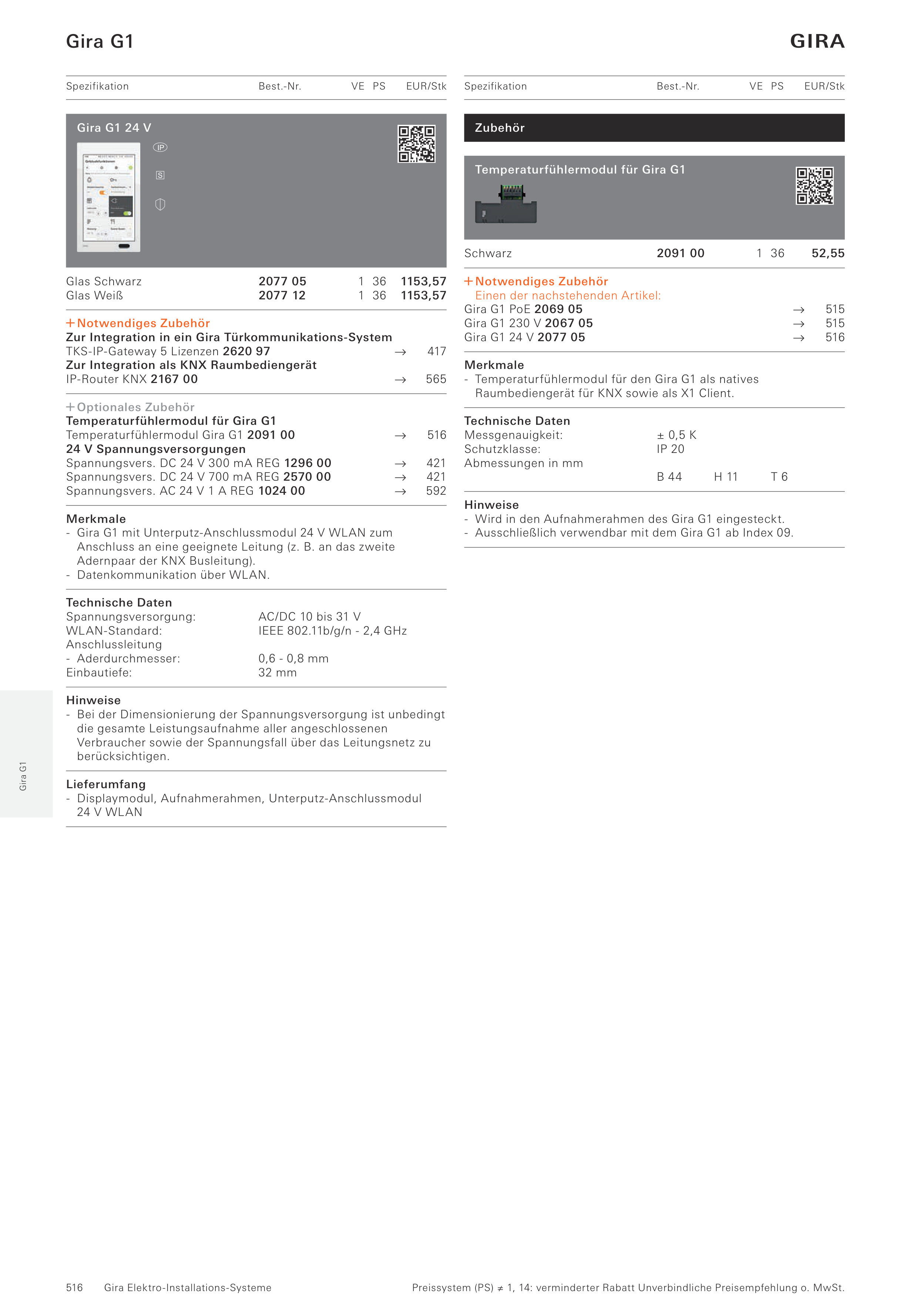 - Ausschließlich verwendbar mit dem Gira G1 ab Index 09.