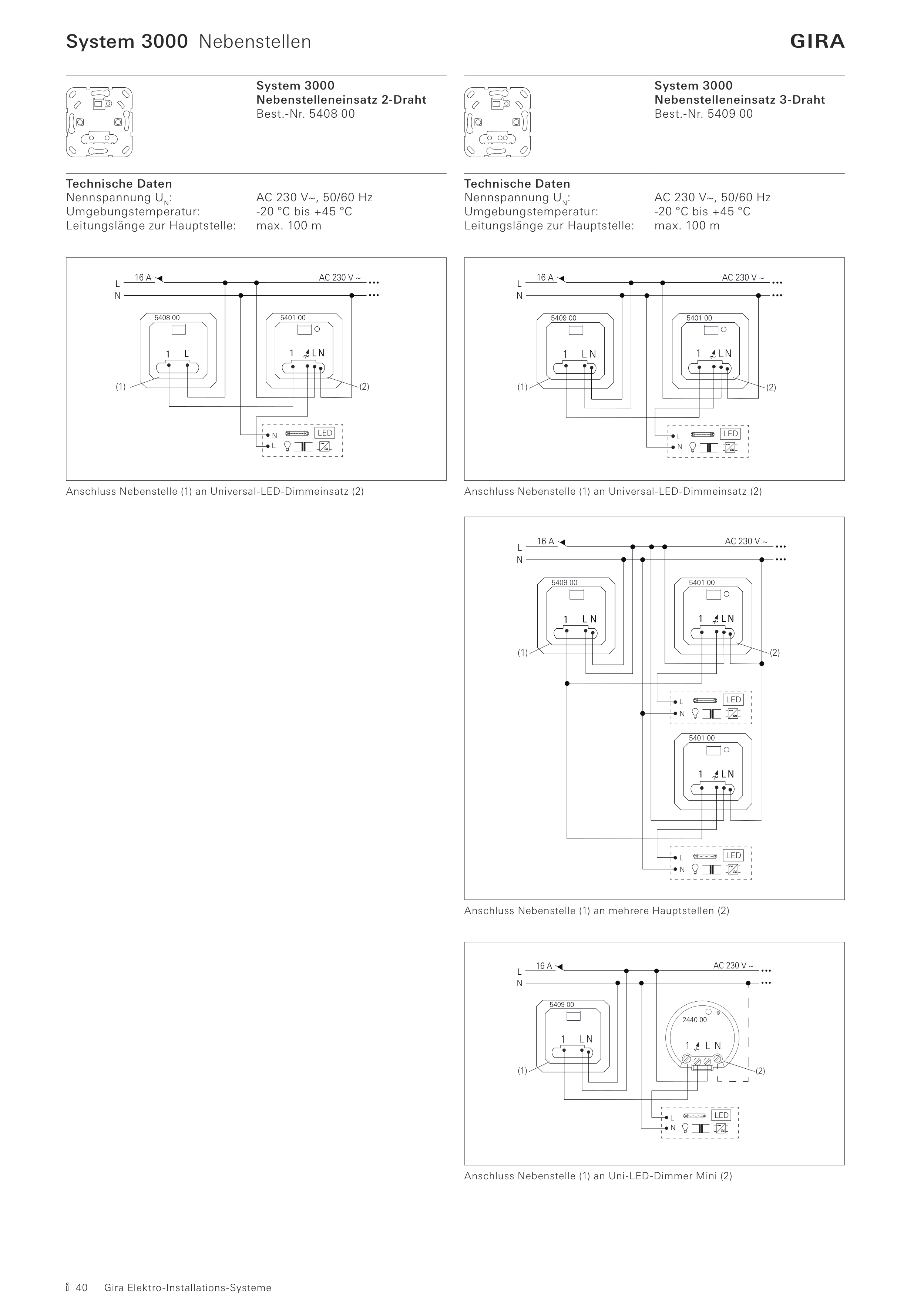 Anschluss Nebenstelle (1) an Universal-LED-Dimmeinsatz (2)