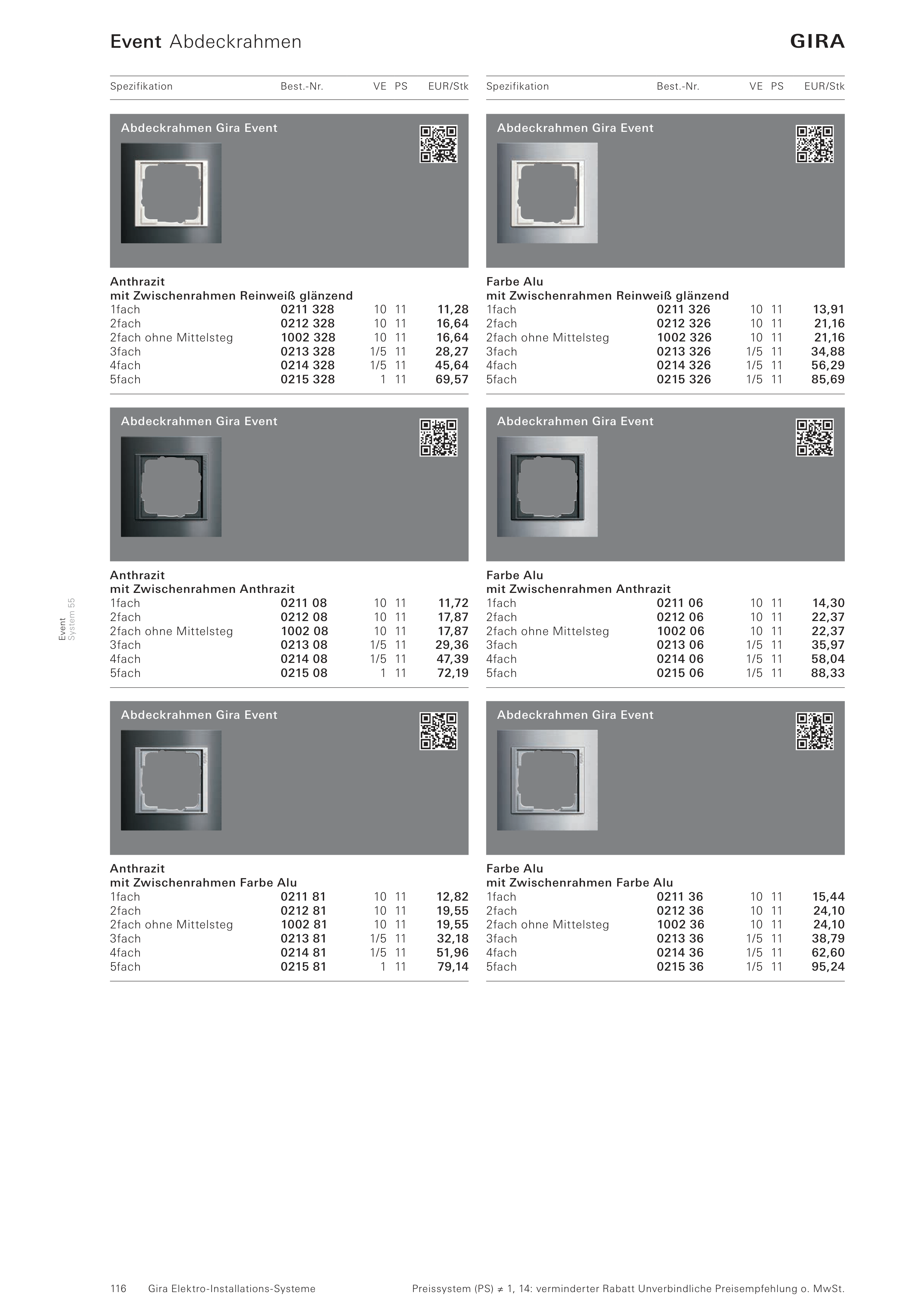 Abdeckrahmen Gira Event