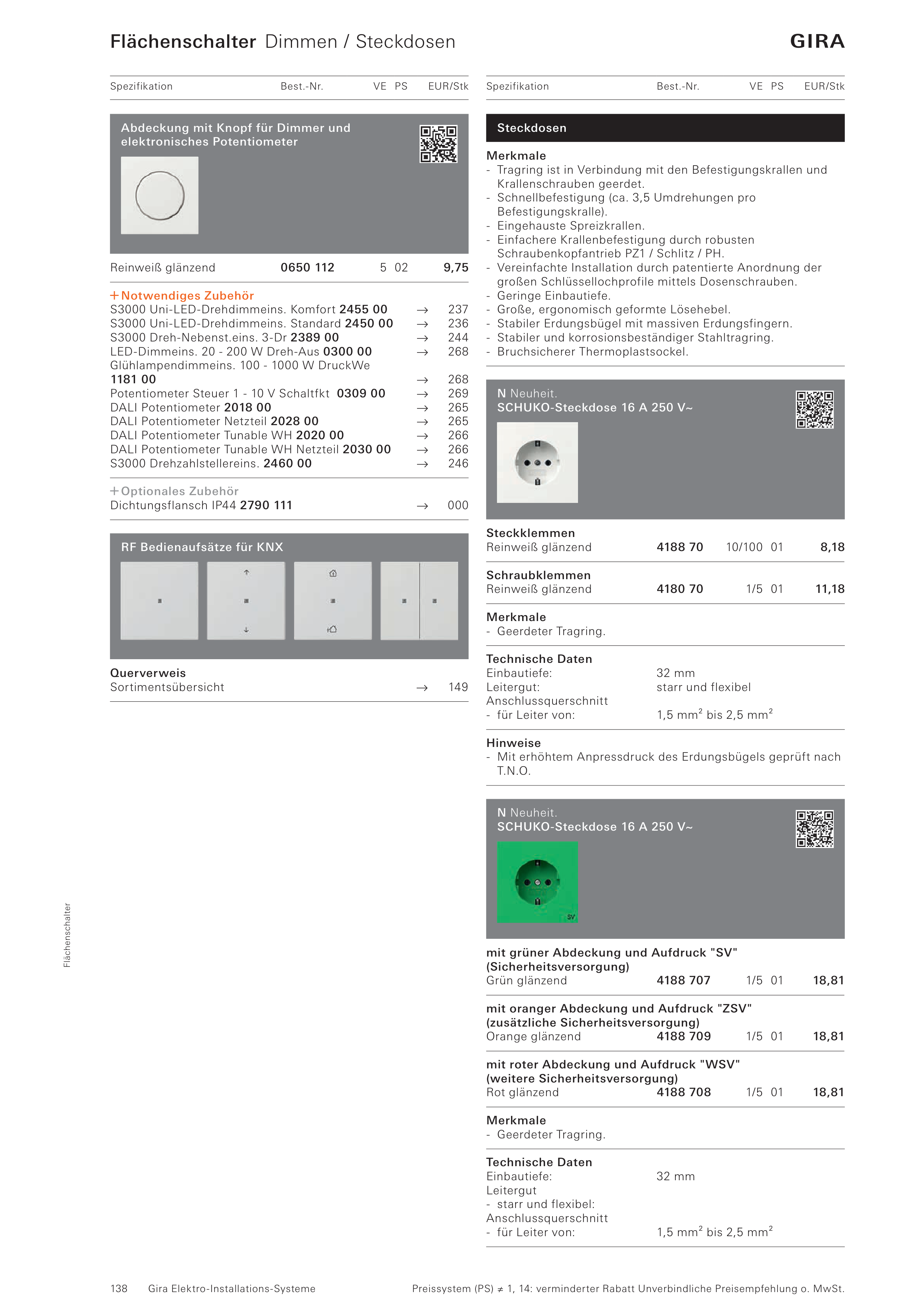 Flächenschalter Dimmen / Steckdosen