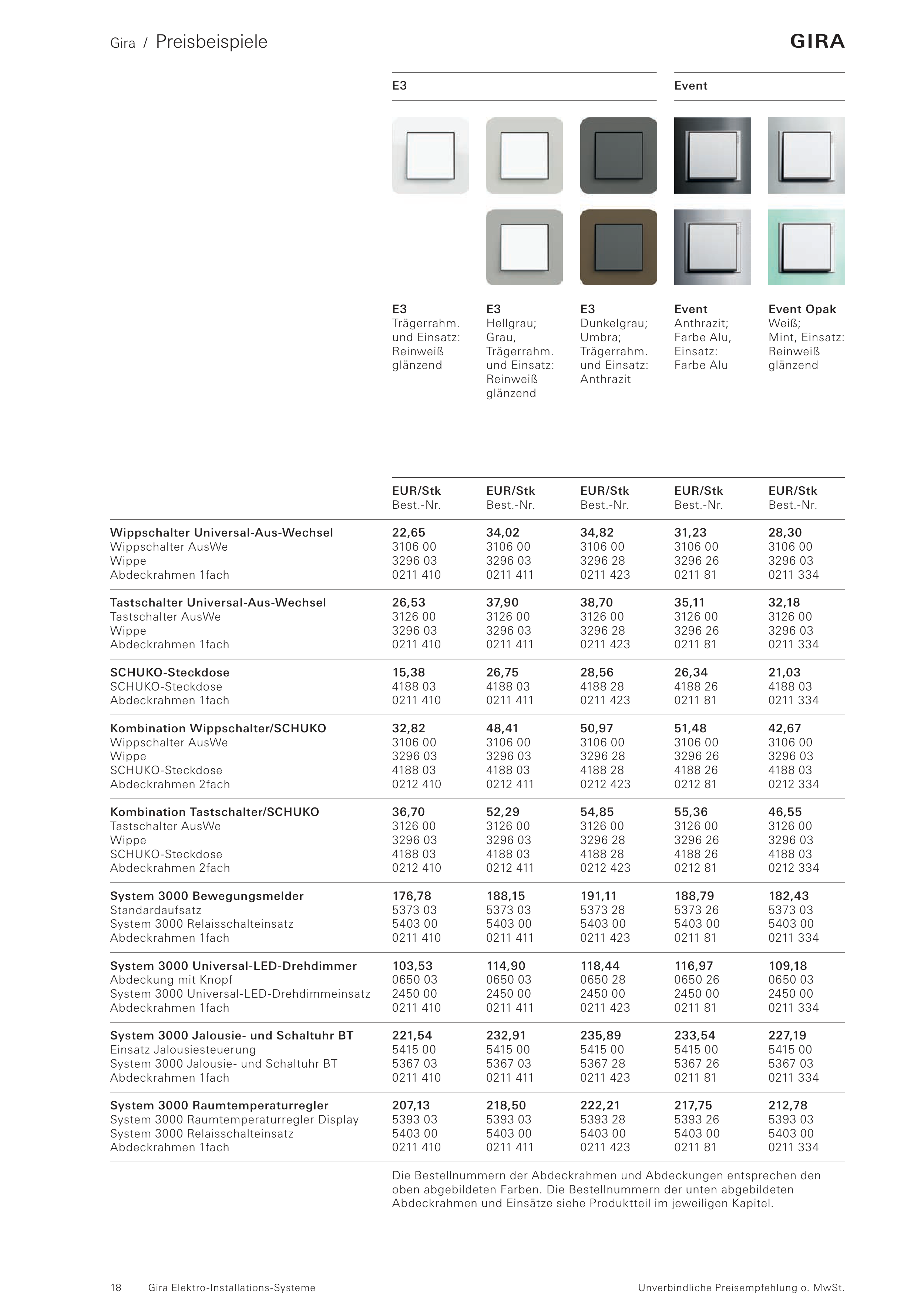Gira / Preisbeispiele