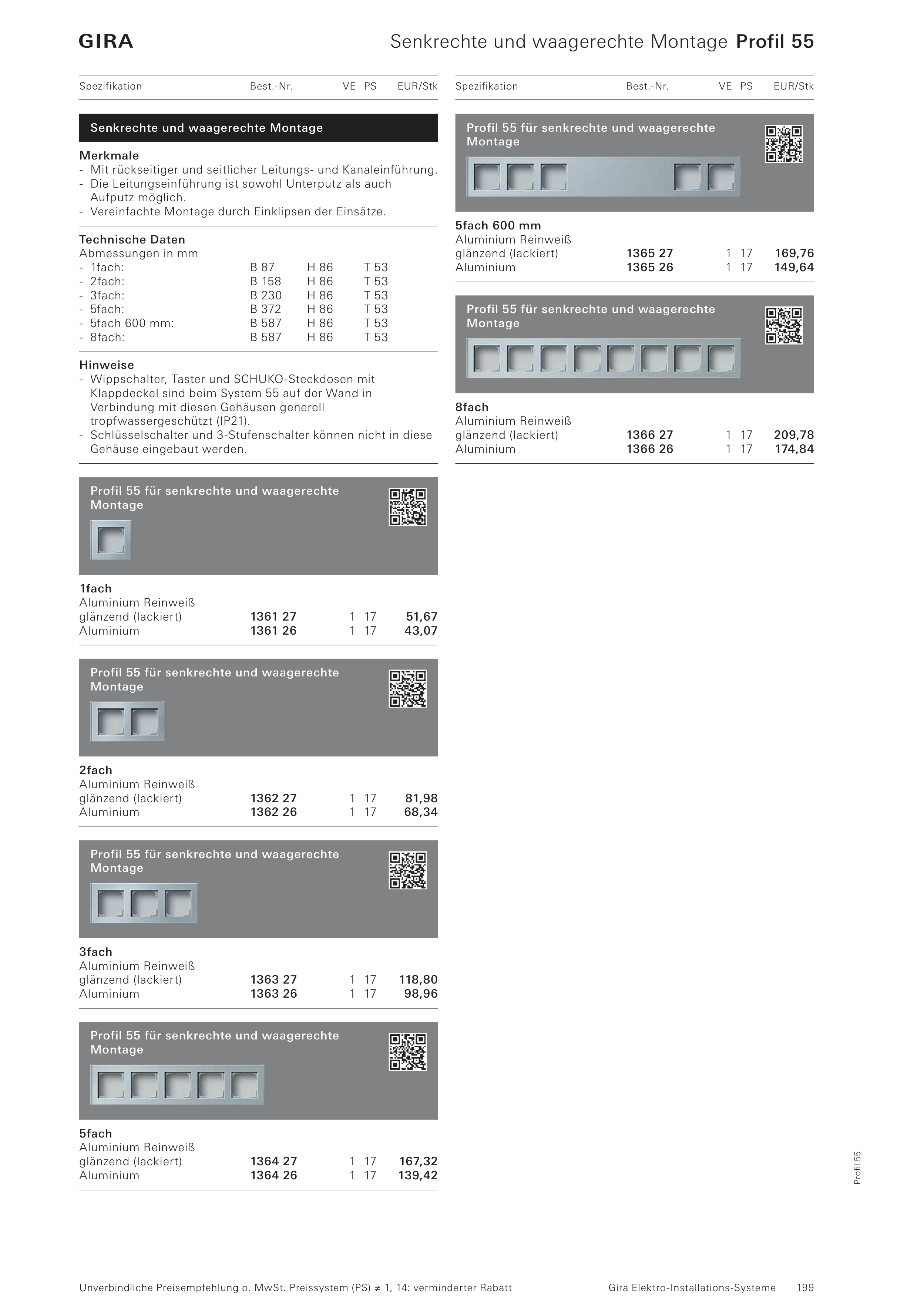 Senkrechte und waagerechte Montage Profil 55