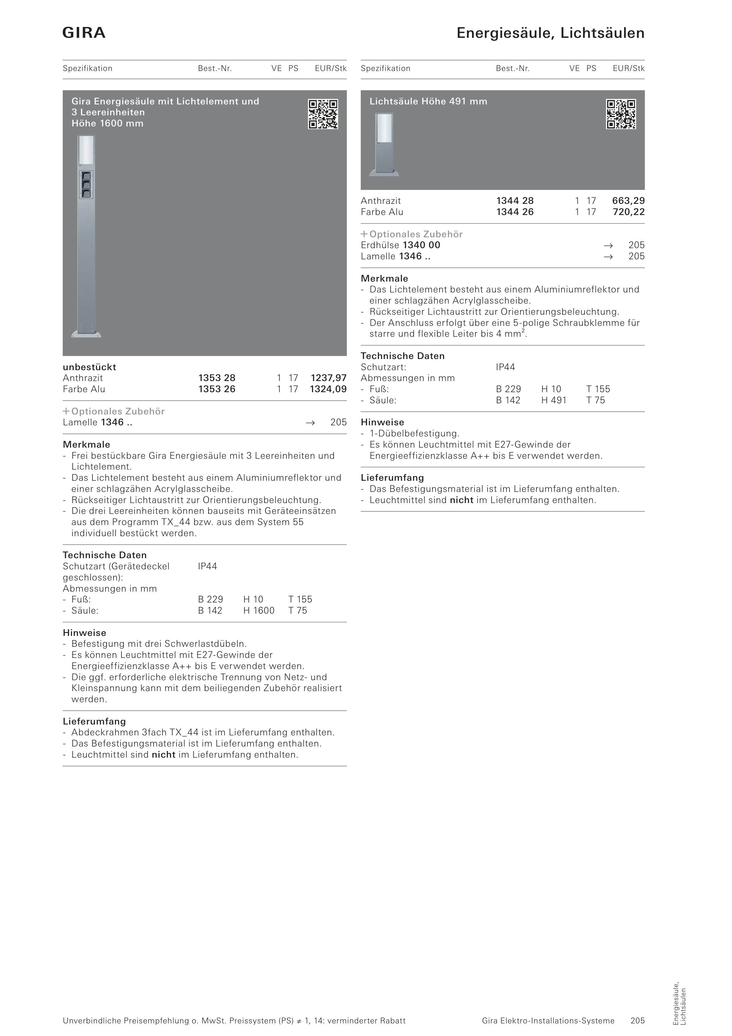 - Frei bestückbare Gira Energiesäule mit 3 Leereinheiten und
