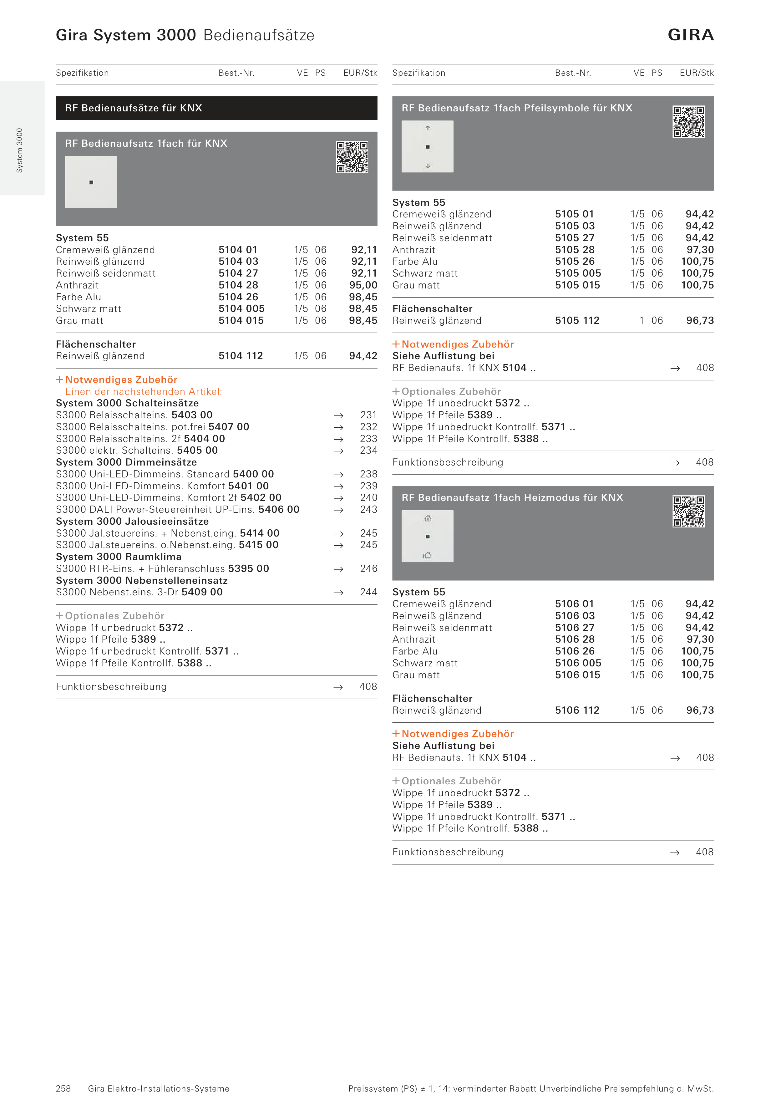 Gira System 3000 Bedienaufsätze