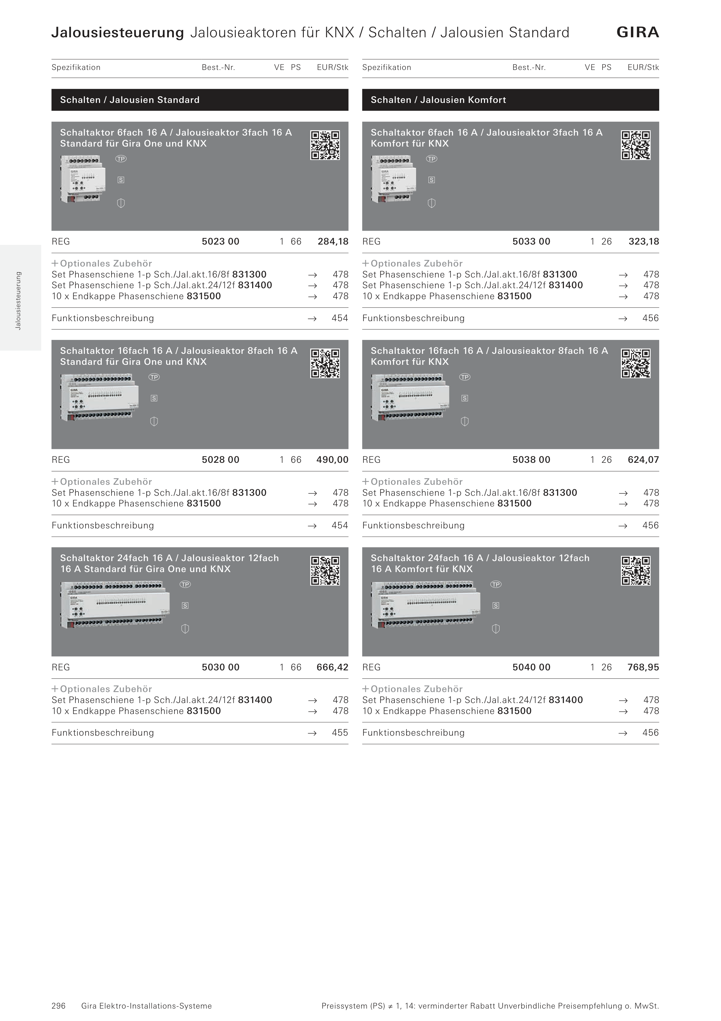 Set Phasenschiene 1-p Sch./Jal.akt.24/12f 831400