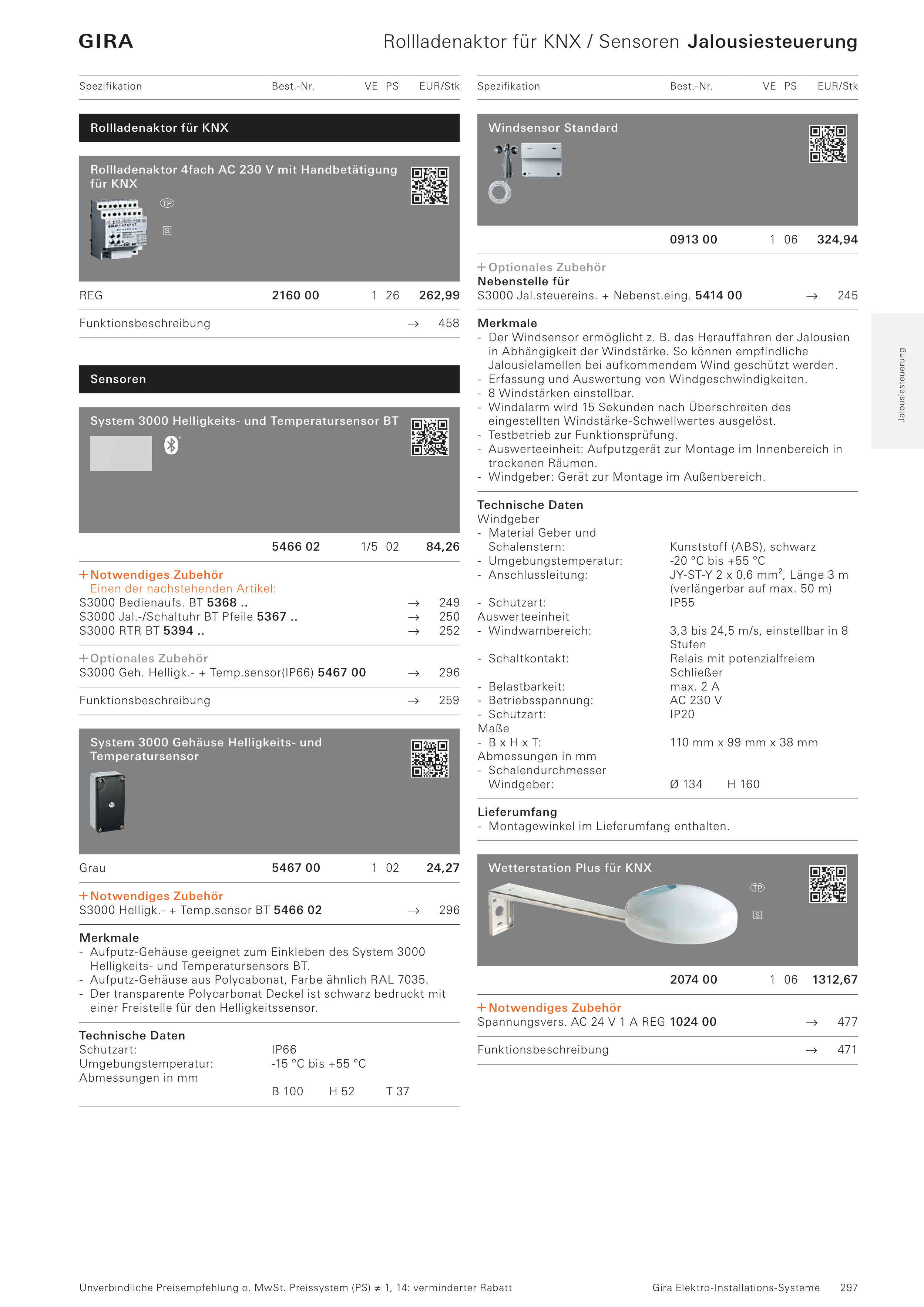- Der Windsensor ermöglicht z. B. das Herauffahren der Jalousien