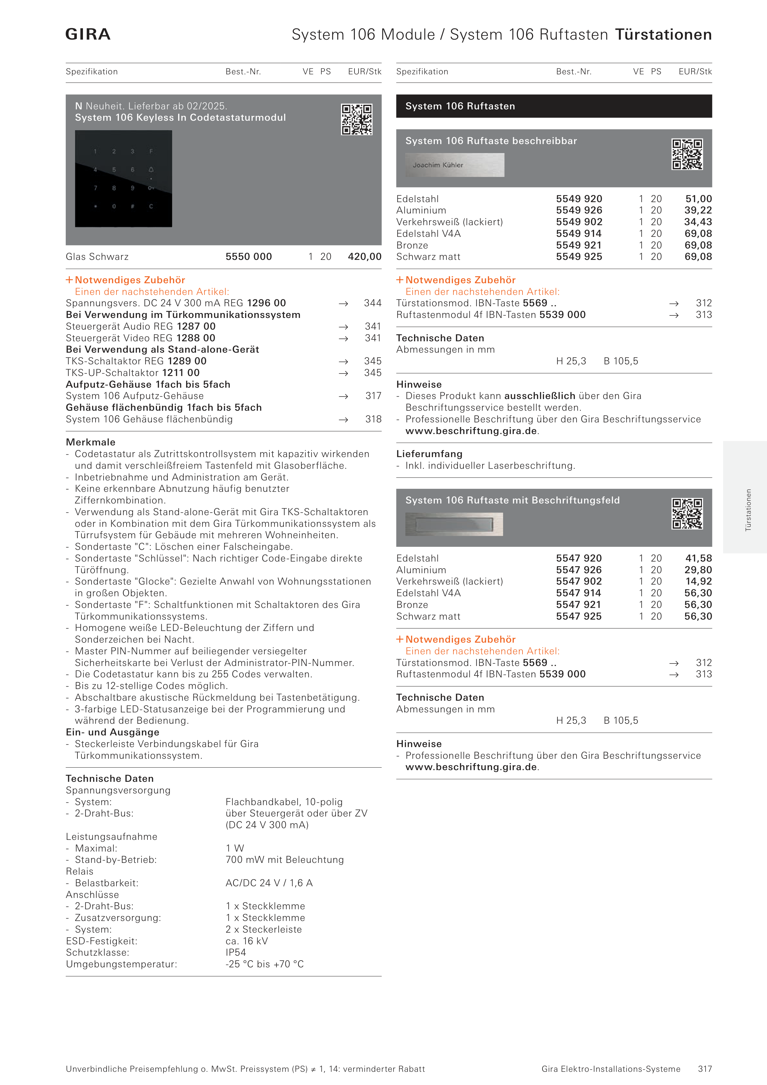 - Professionelle Beschriftung über den Gira Beschriftungsservice