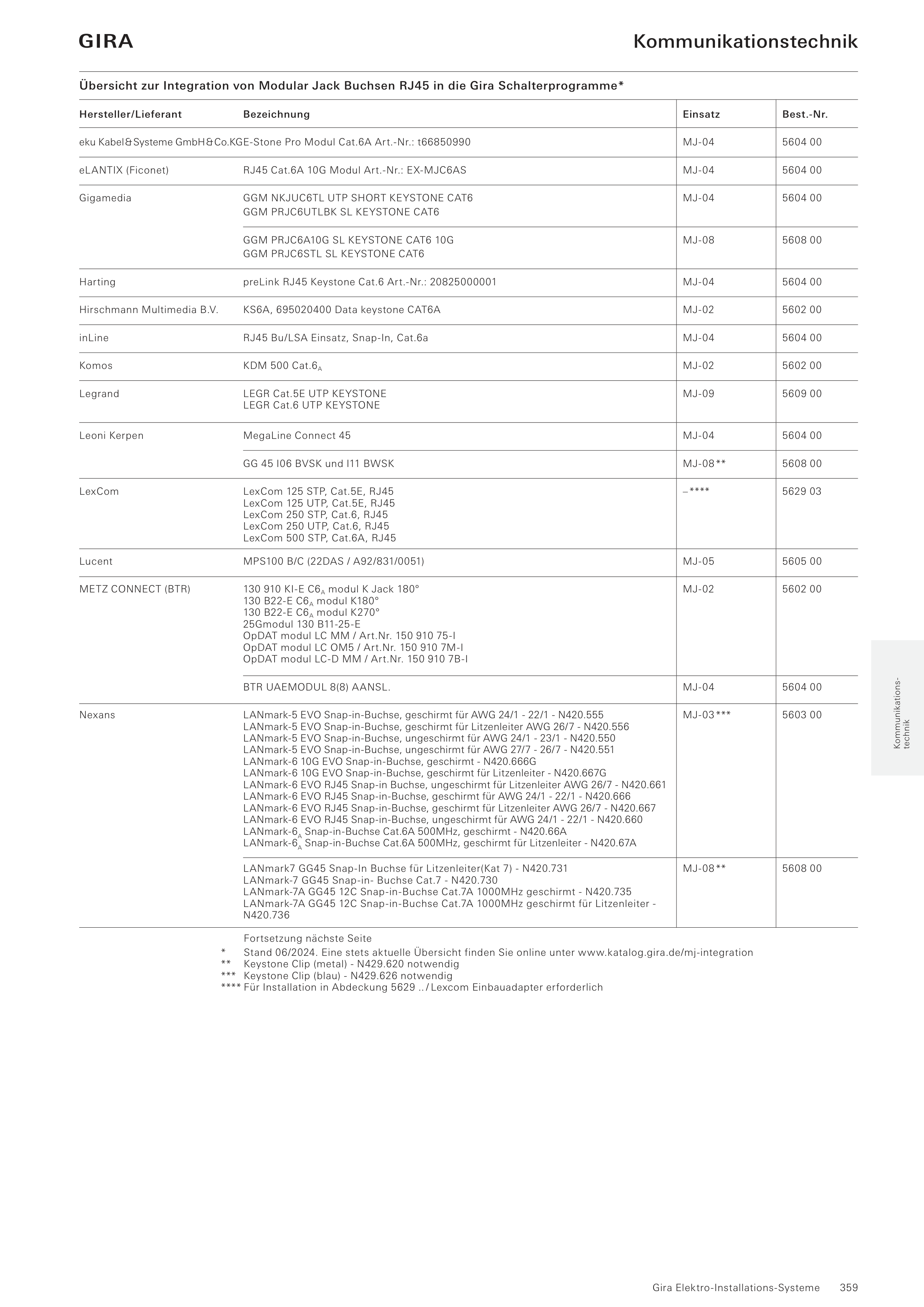 Stand 06/2024. Eine stets aktuelle Übersicht finden Sie online unter www.katalog.gira.de/mj-integration