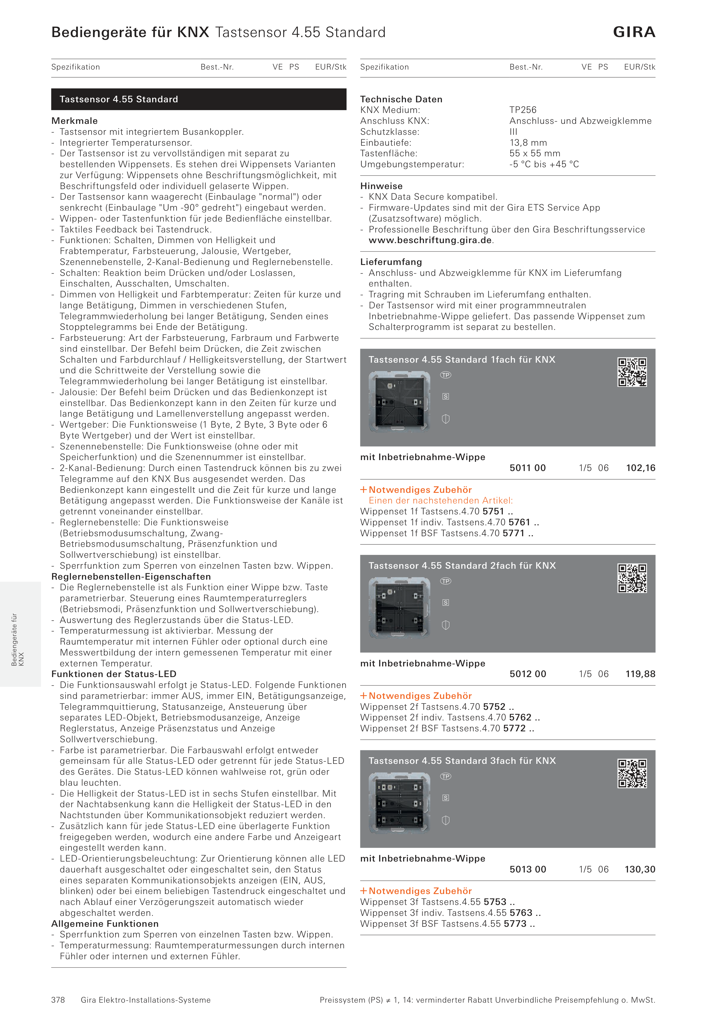 Bediengeräte für KNX Tastsensor 4.55 Standard