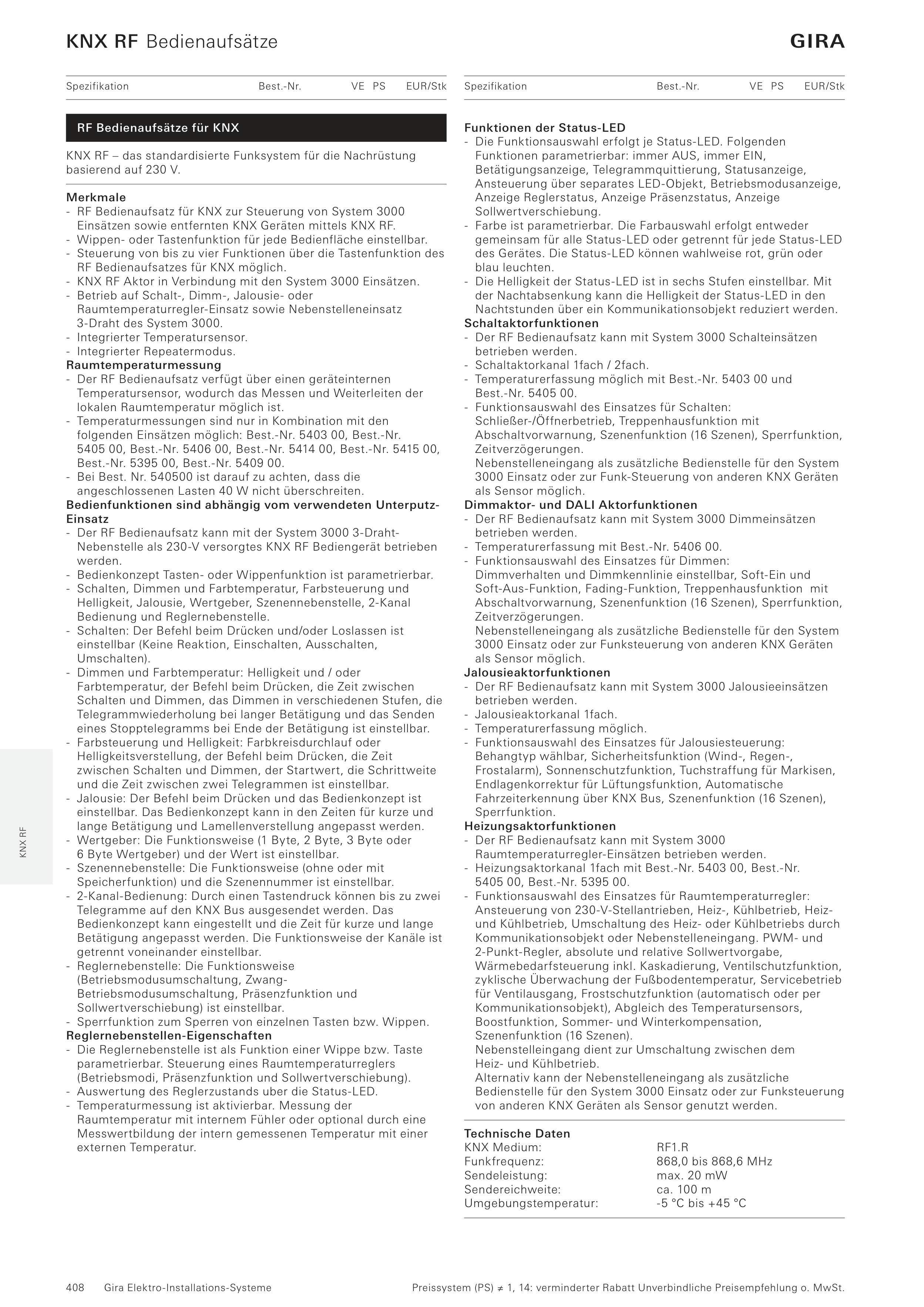 RF Bedienaufsatzes für KNX möglich.