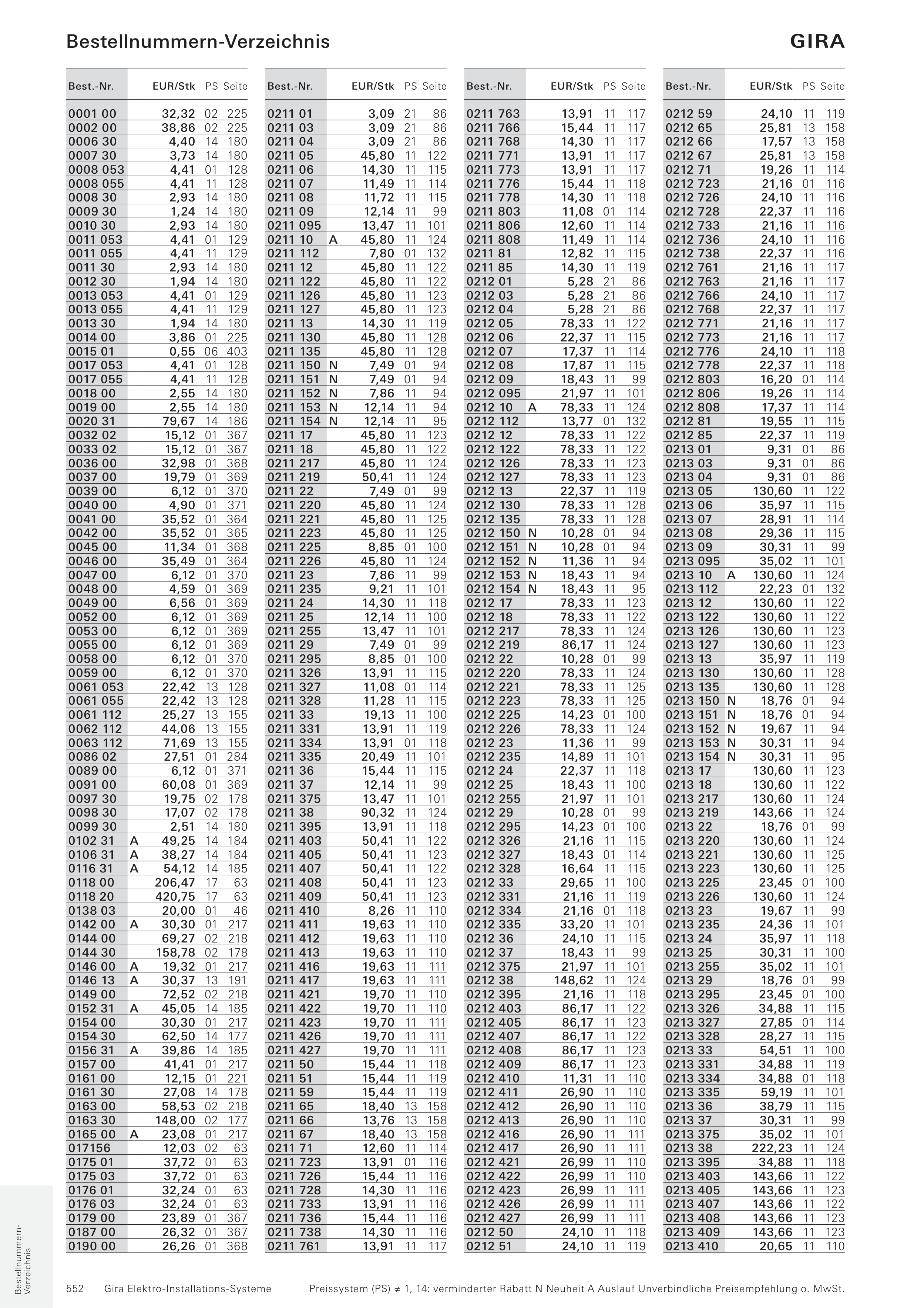 Preissystem (PS) ≠ 1, 14: verminderter Rabatt N Neuheit A Auslauf Unverbindliche Preisempfehlung o. MwSt.