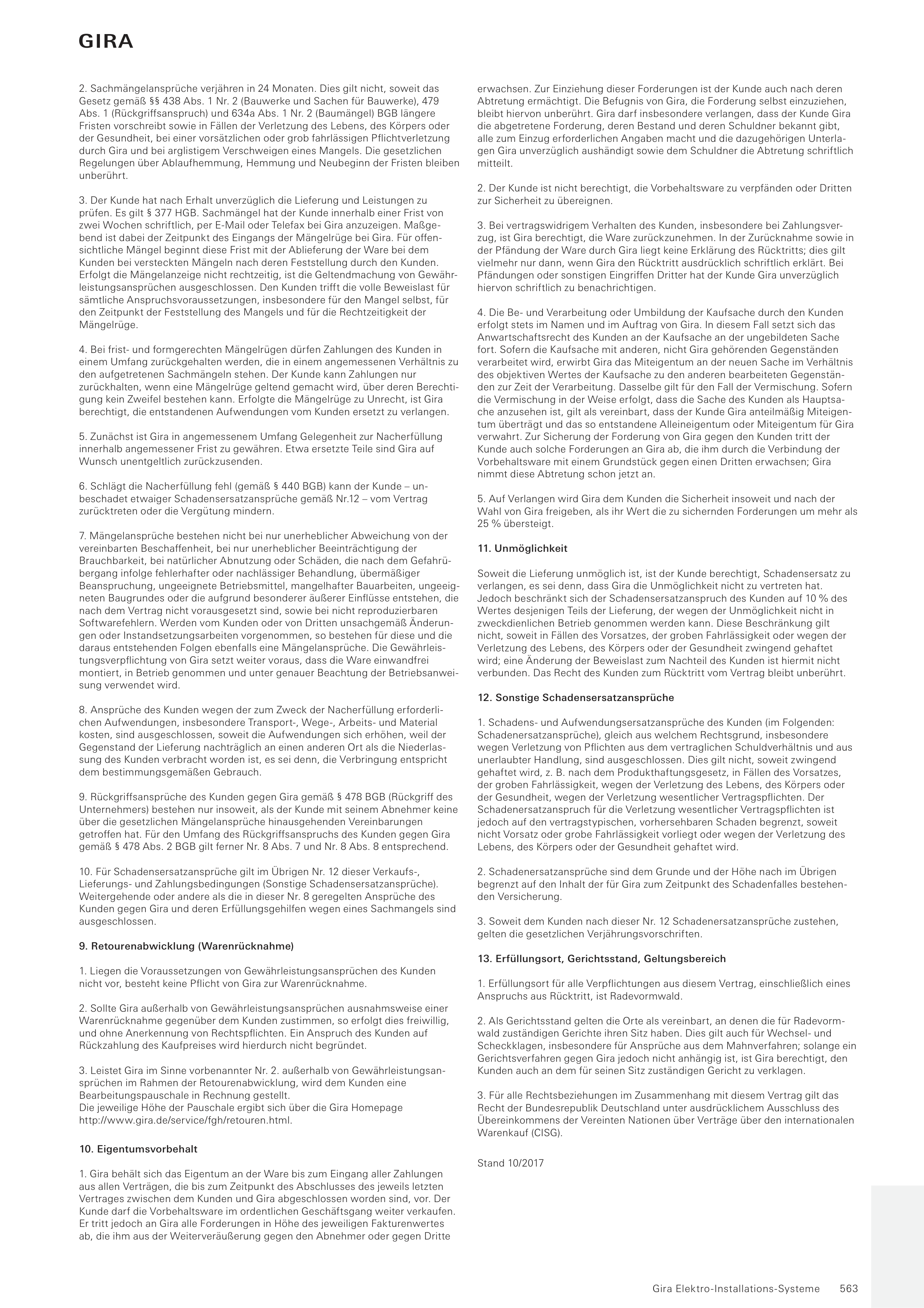 nicht vor, besteht keine Pflicht von Gira zur Warenrücknahme.