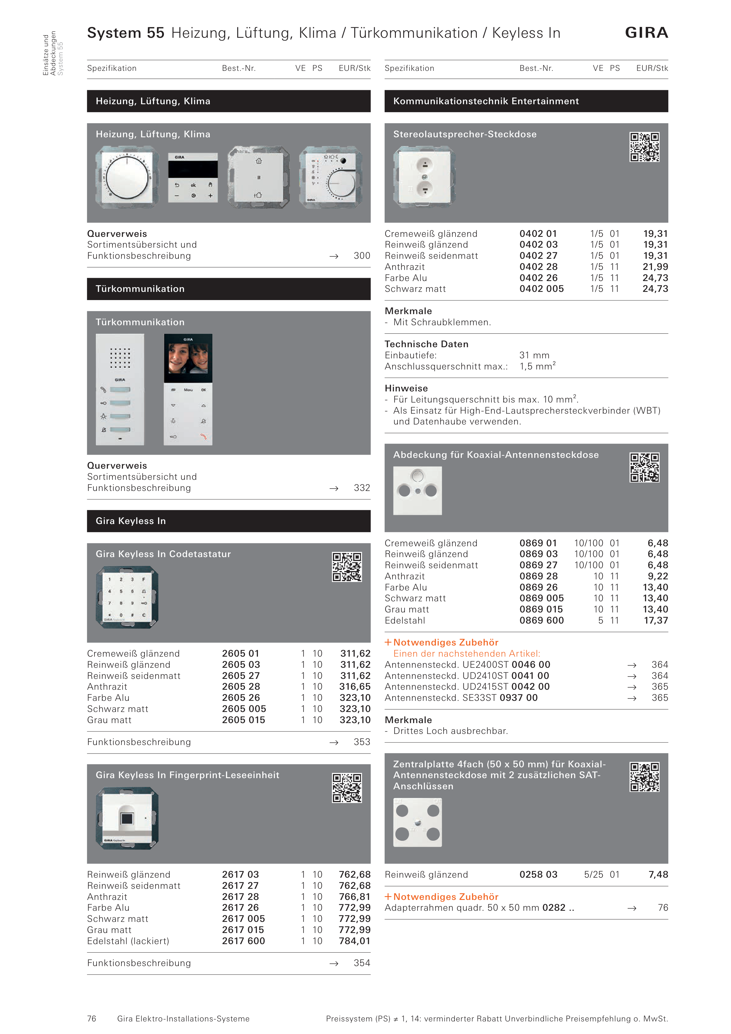 System 55 Heizung, Lüftung, Klima / Türkommunikation / Keyless In