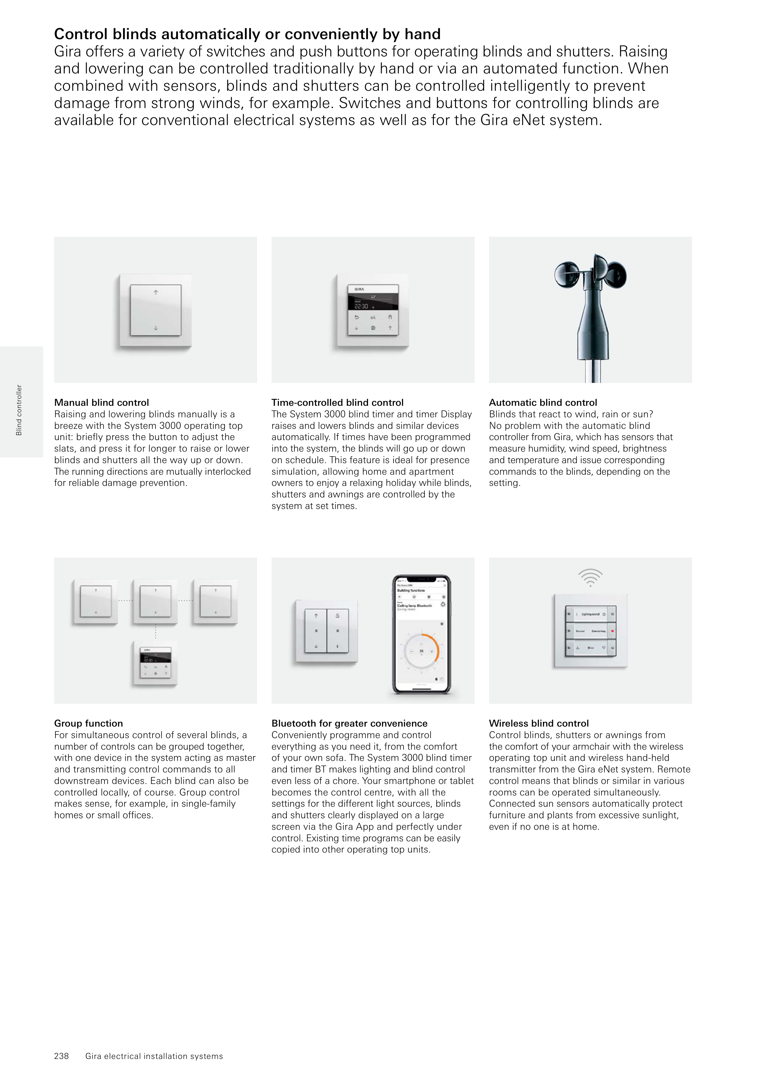 damage from strong winds, for example. Switches and buttons for controlling blinds are