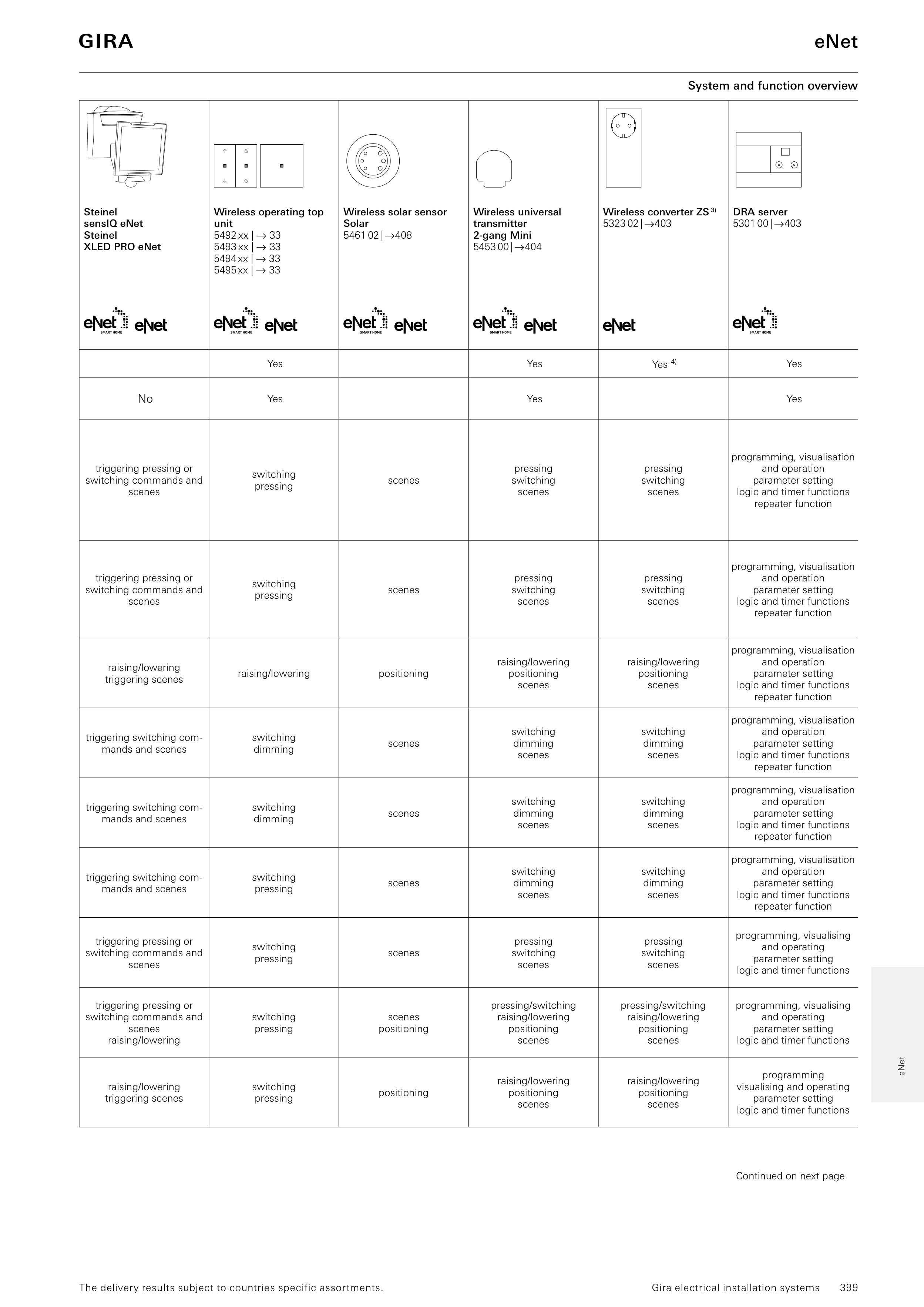 4) Only possible in eNet system, not through to the wireless bus system.