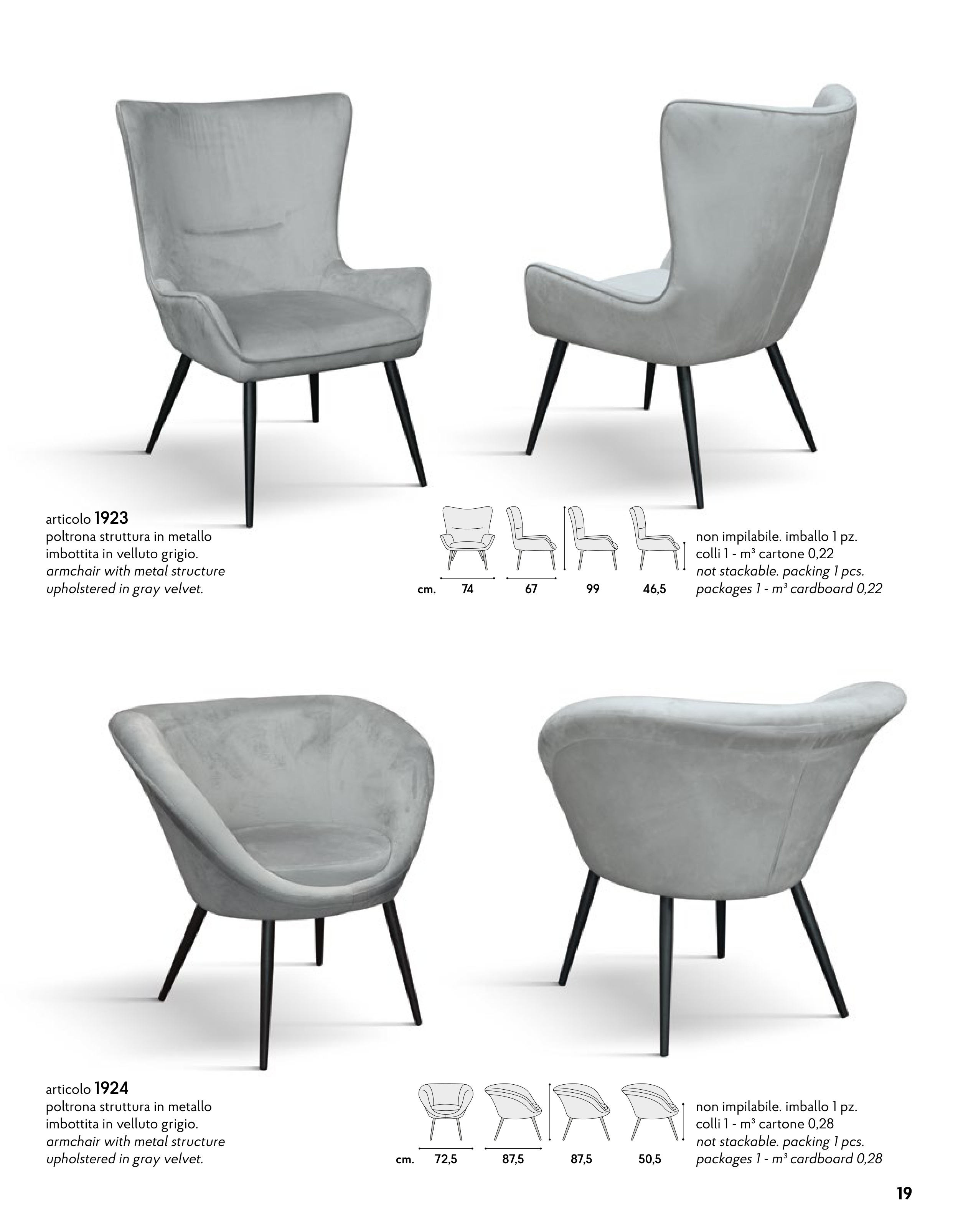 imbottita in velluto grigio.