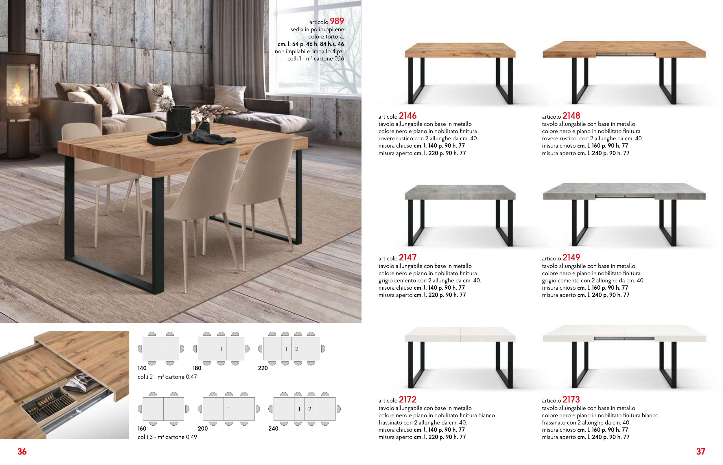 grigio cemento con 2 allunghe da cm. 40.