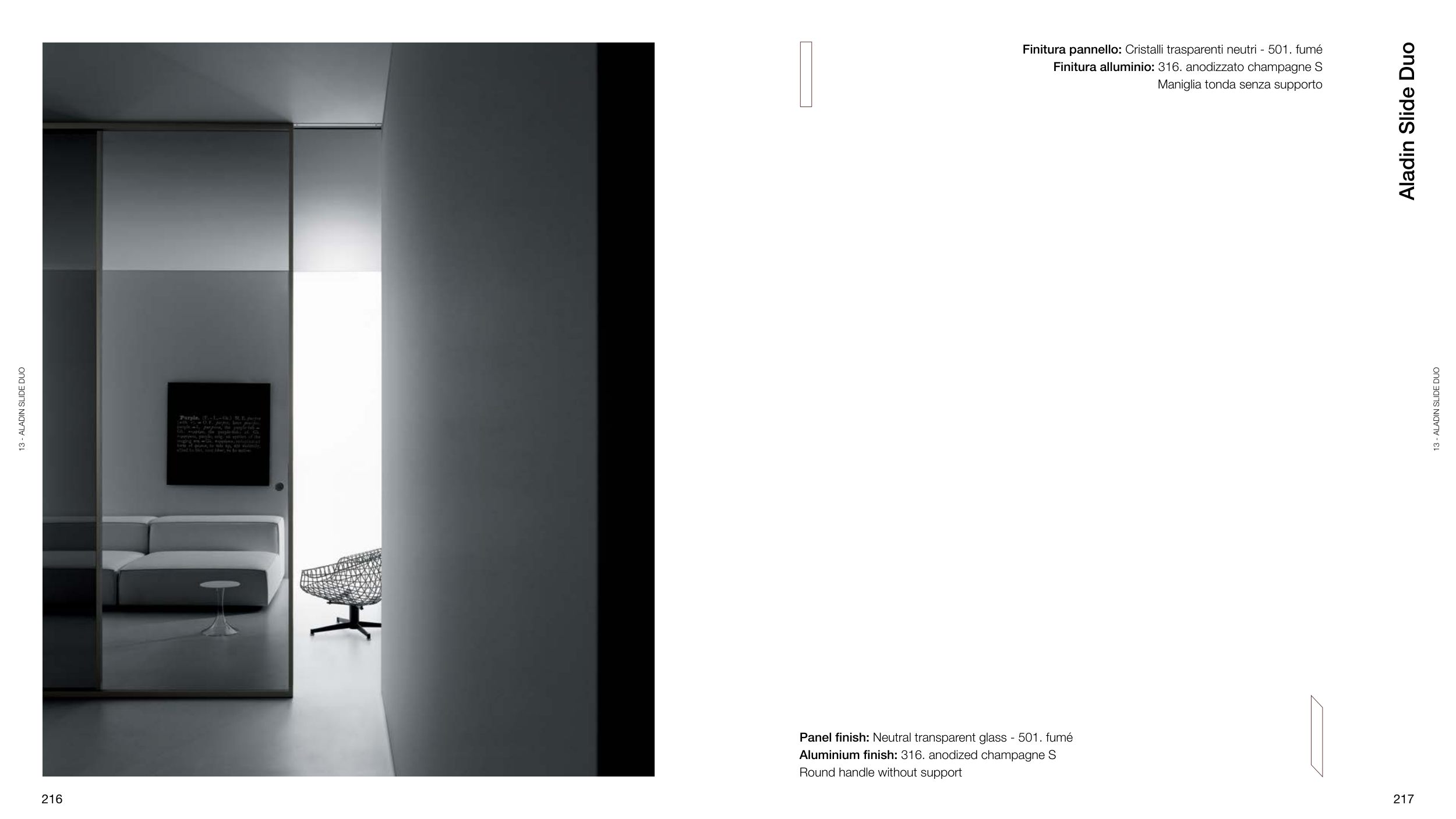 Panel finish: Neutral transparent glass - 501. fumé