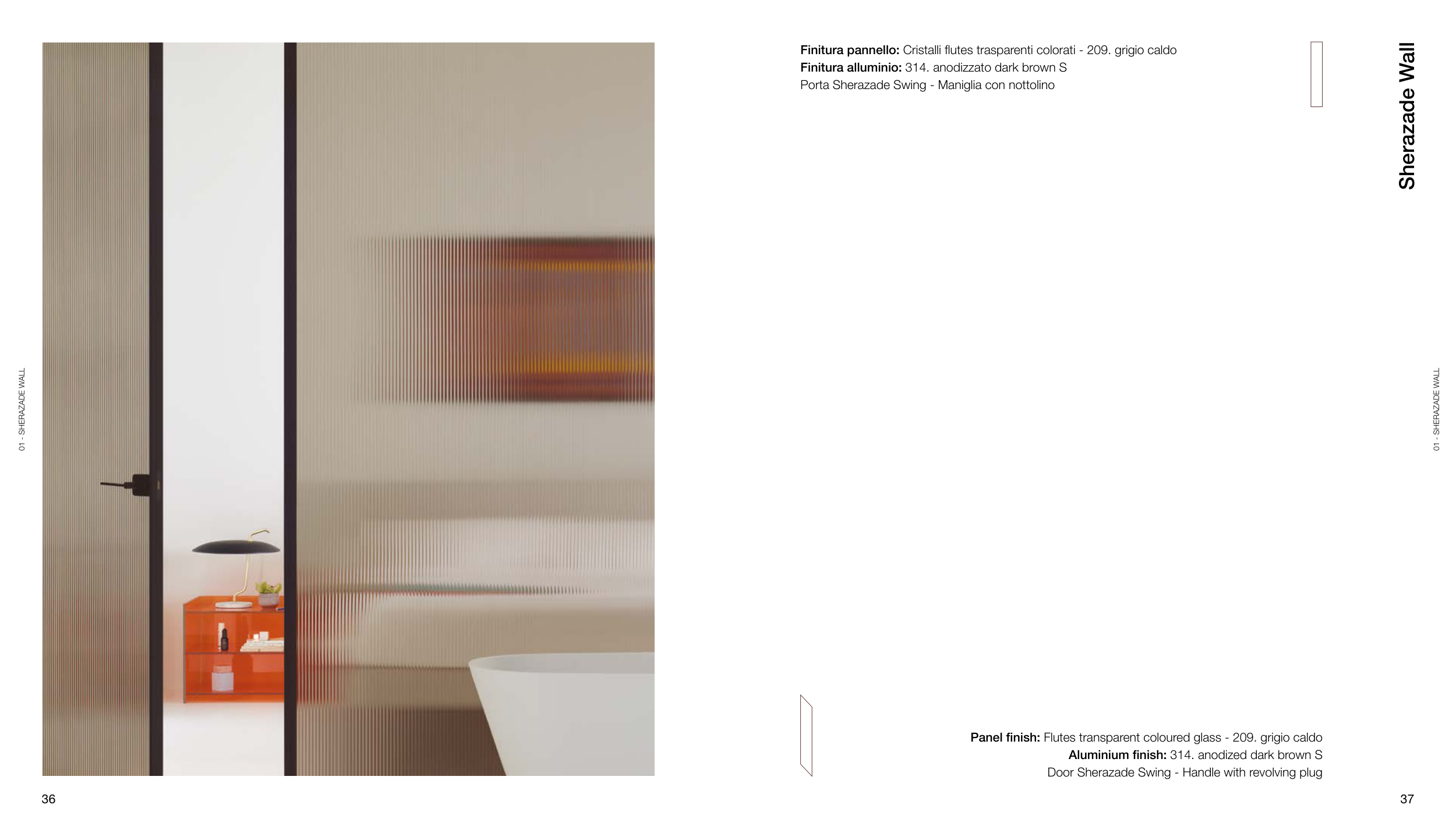Panel finish: Flutes transparent coloured glass - 209. grigio caldo