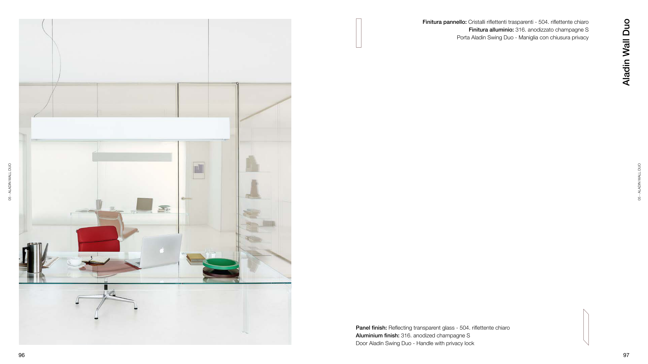 Panel finish: Reflecting transparent glass - 504. riflettente chiaro