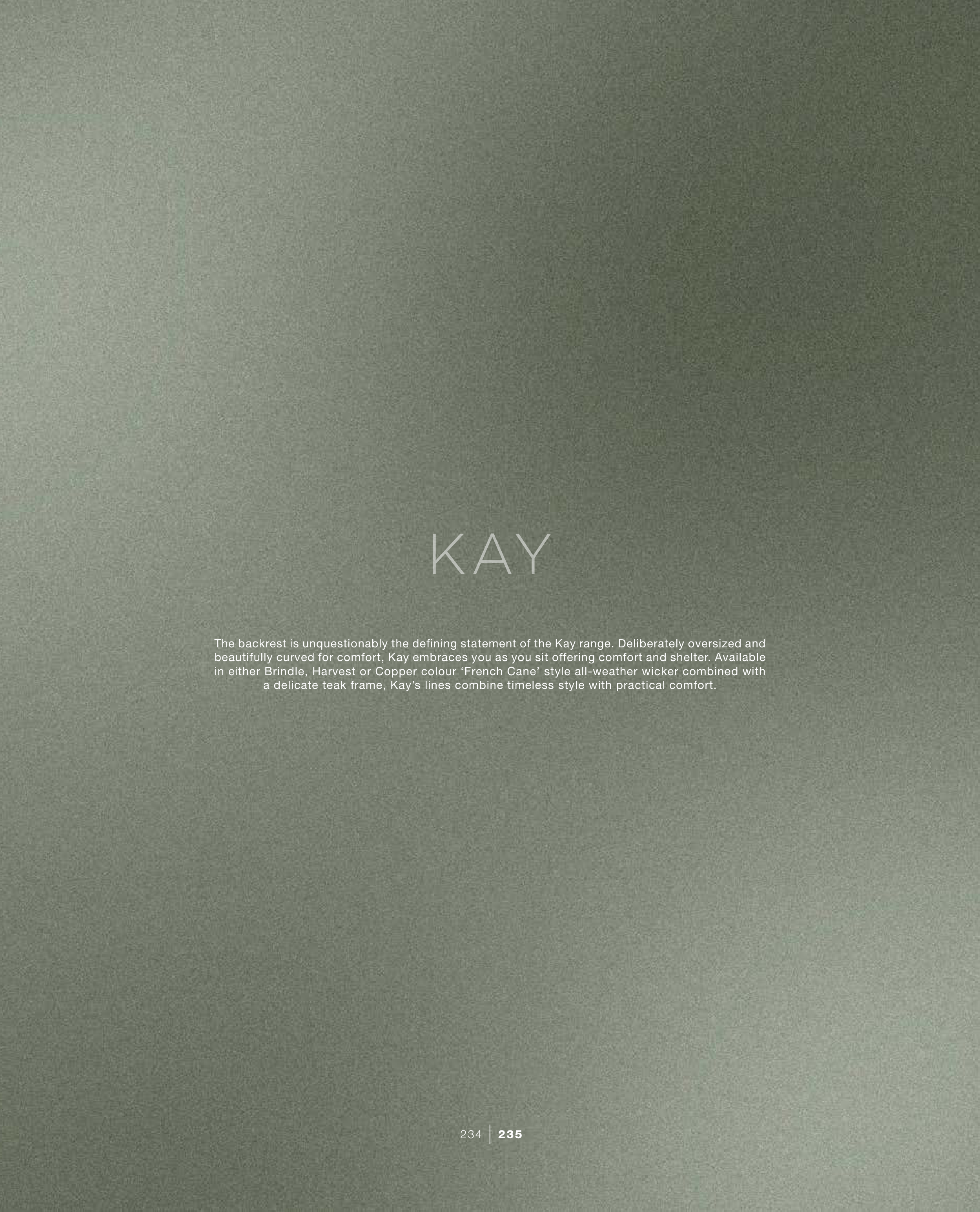a delicate teak frame, Kay’s lines combine timeless style with practical comfort.