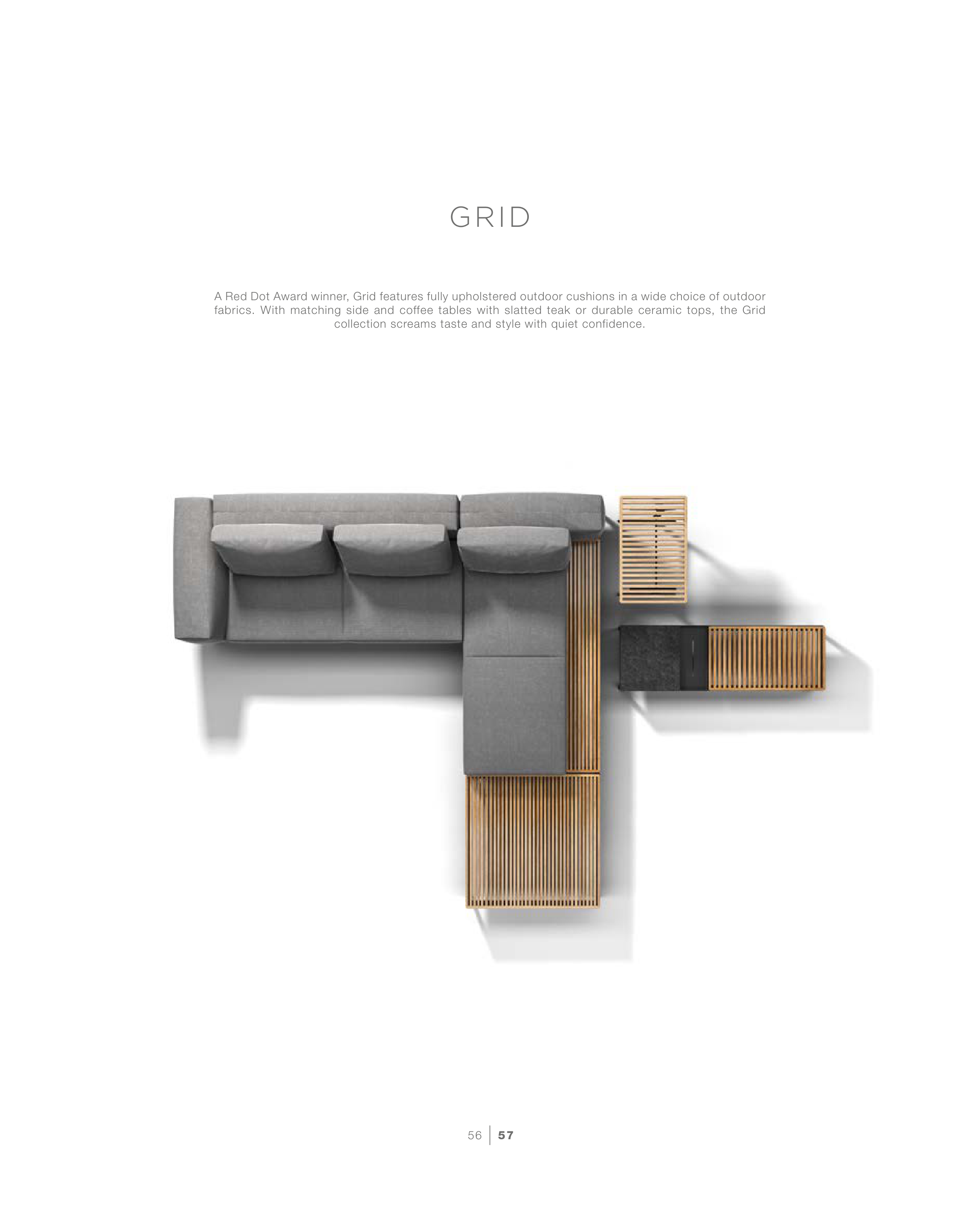 fabrics. With matching side and coffee tables with slatted teak or durable ceramic tops, the Grid