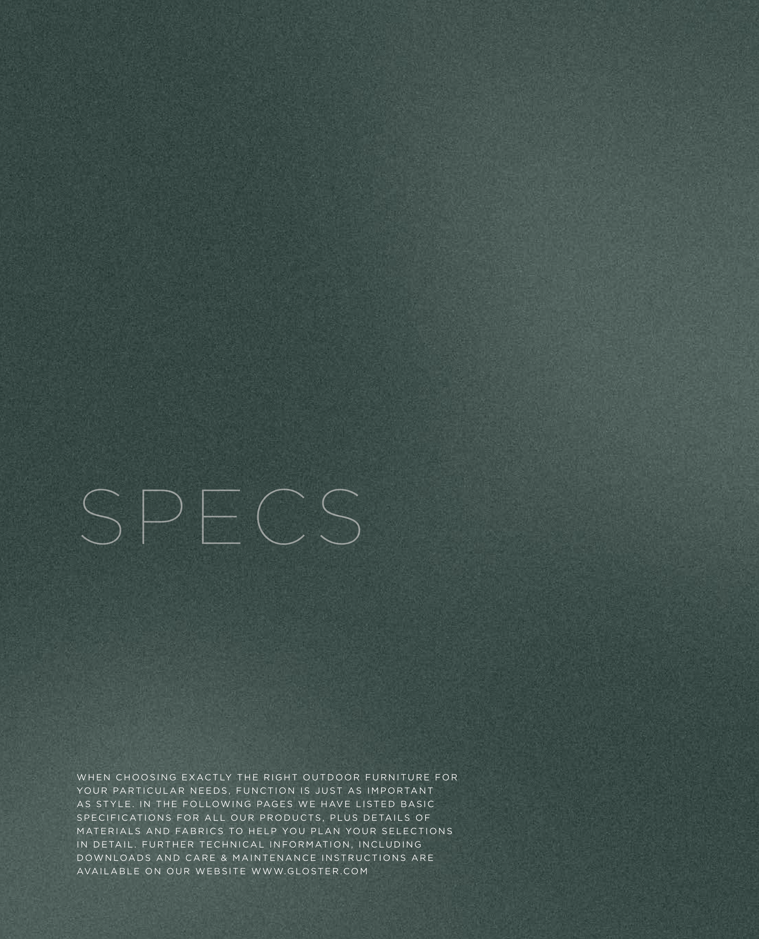S P ECIFICAT ION S FO R ALL O UR PRO D UC TS , PLUS DETA ILS OF