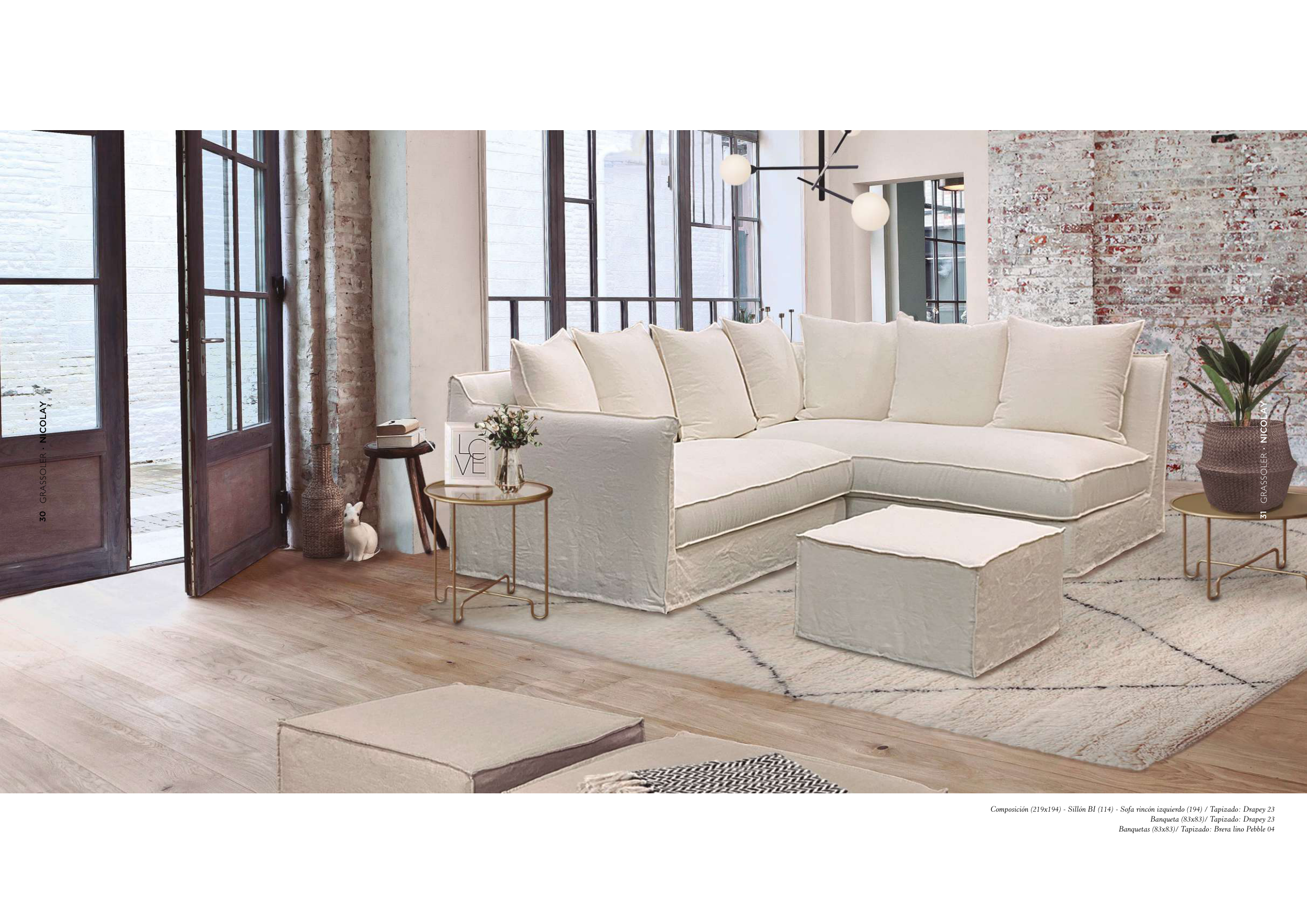 Banquetas (83x83)/ Tapizado: Brera lino Pebble 04
