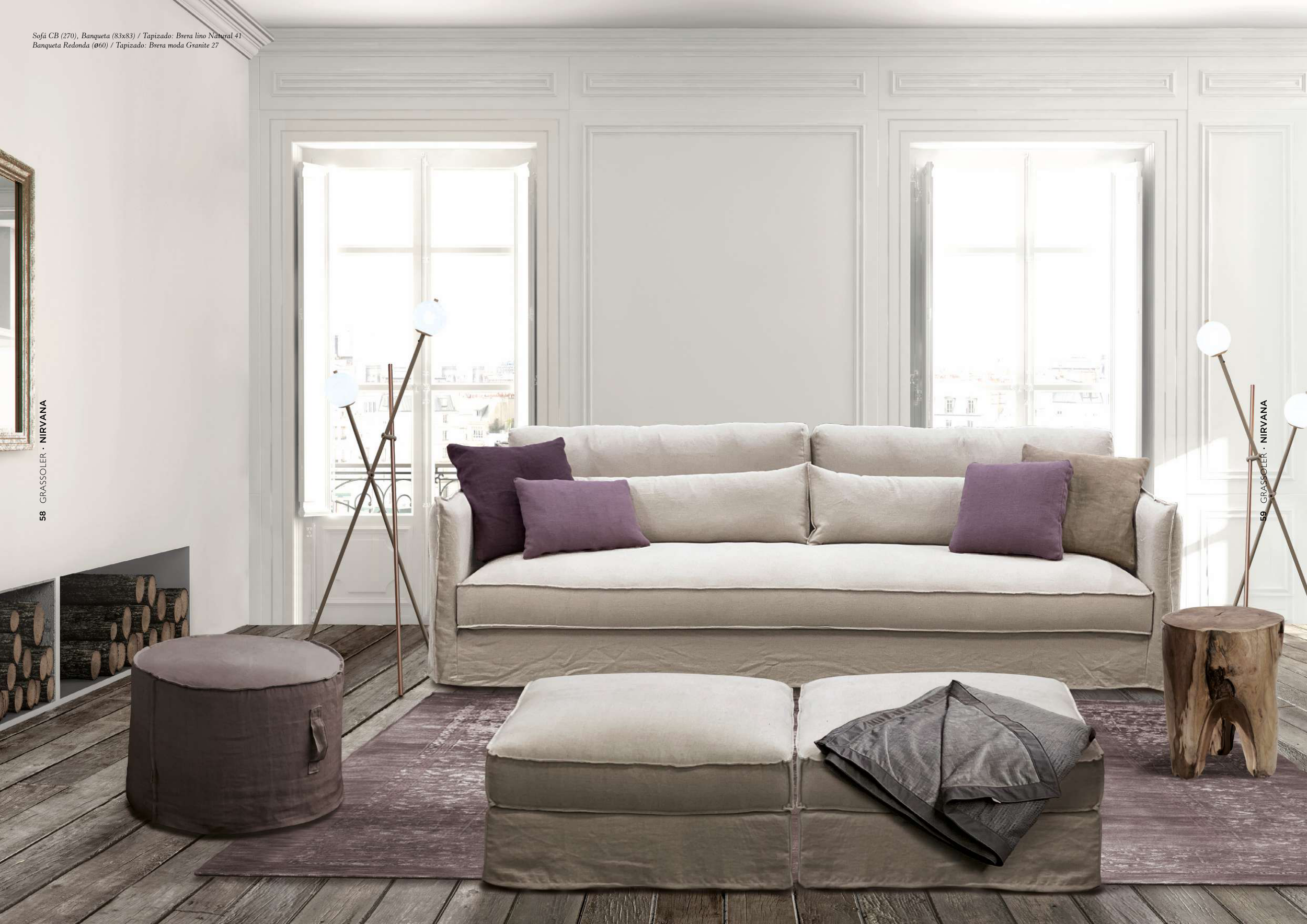 Sofá CB (270), Banqueta (83x83) / Tapizado: Brera lino Natural 41