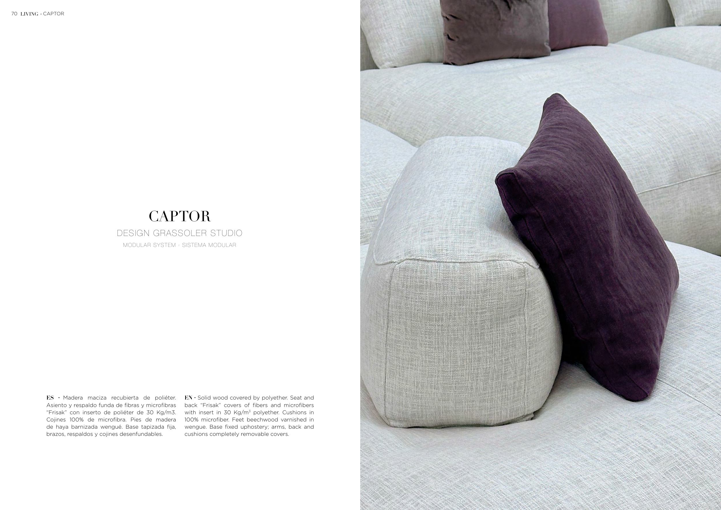 Cojines 100% de microfibra. Pies de madera