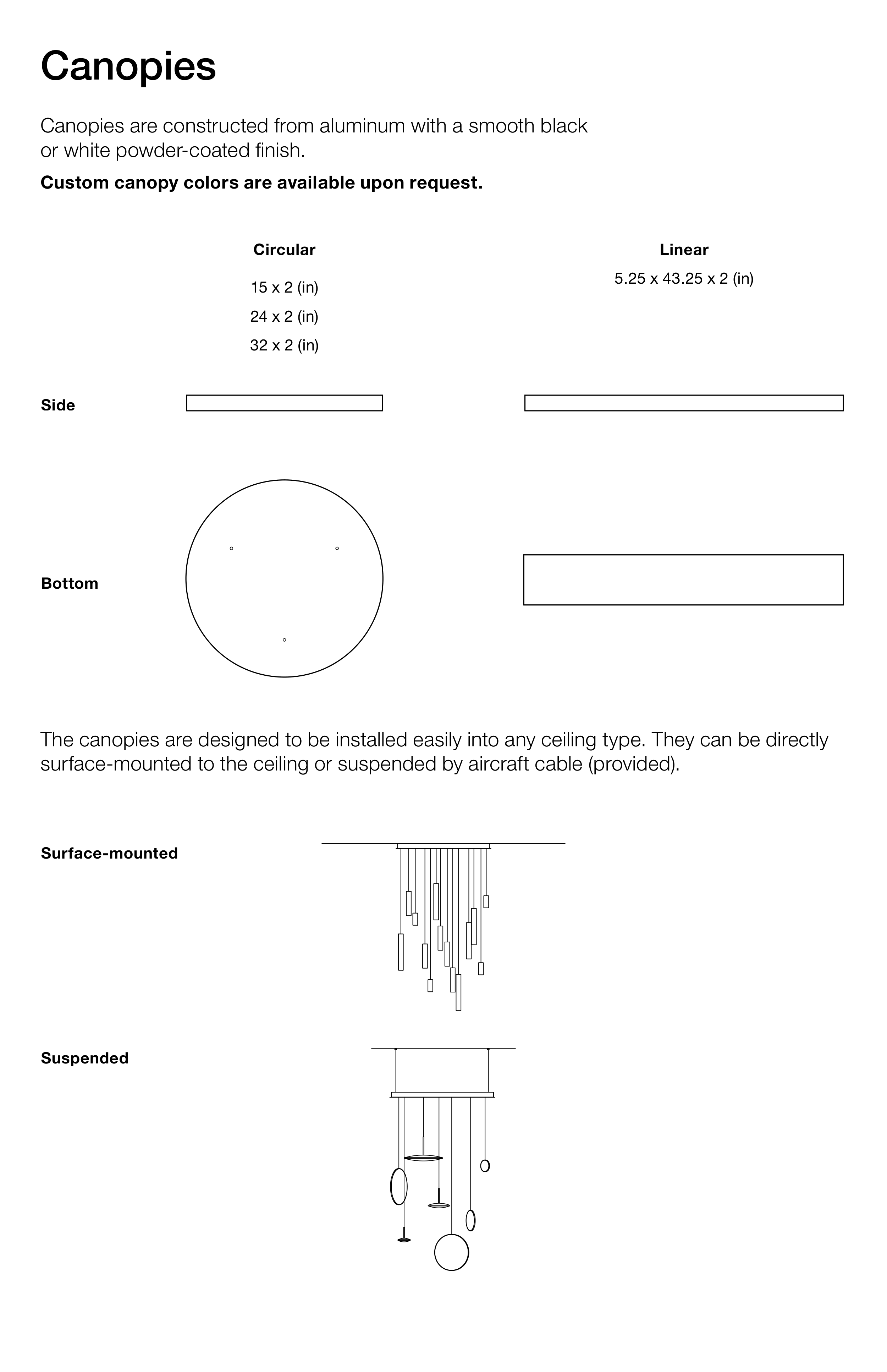 The canopies are designed to be installed easily into any ceiling type. They can be directly