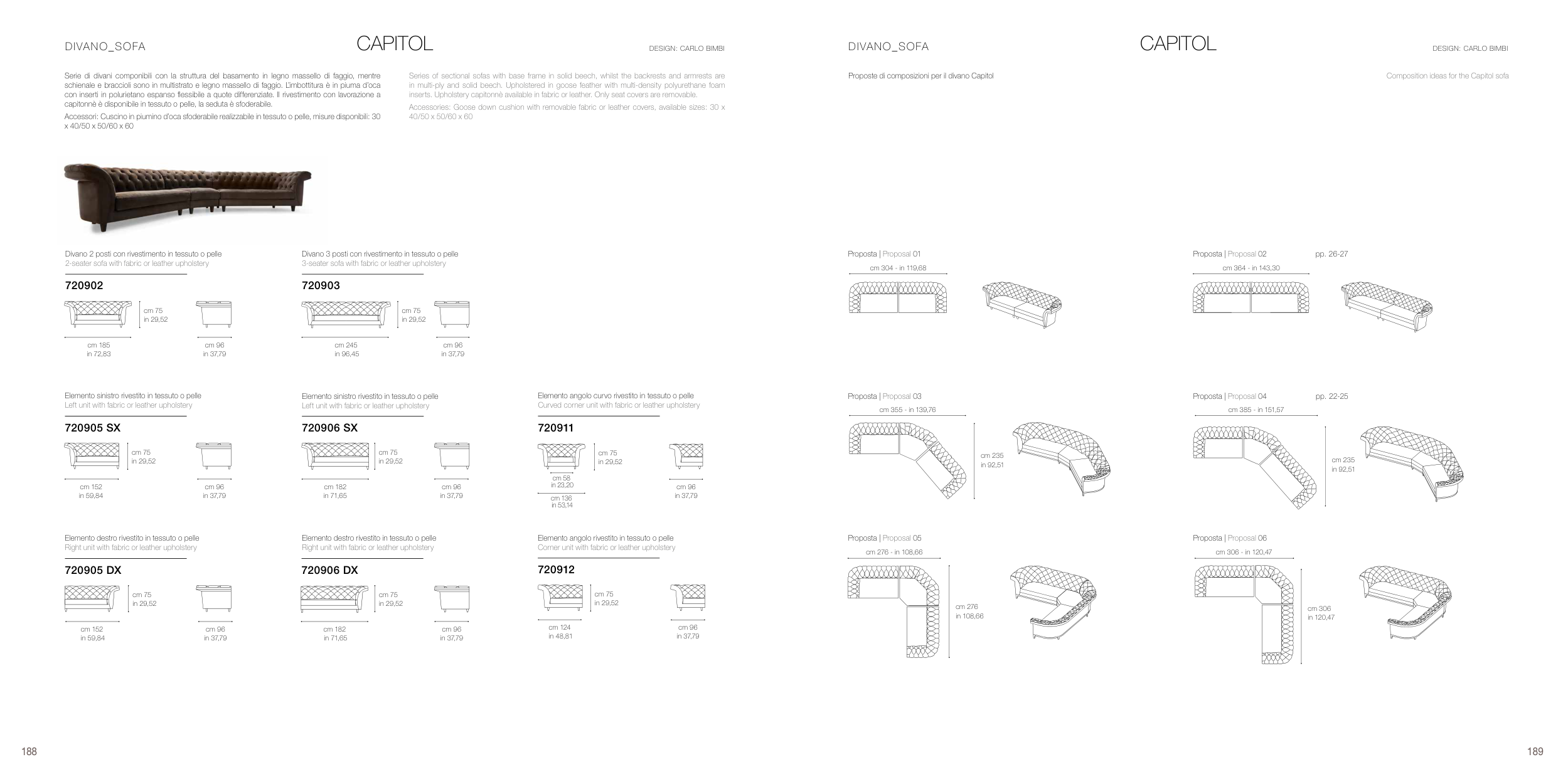 inserts. Upholstery capitonnè available in fabric or leather. Only seat covers are removable.