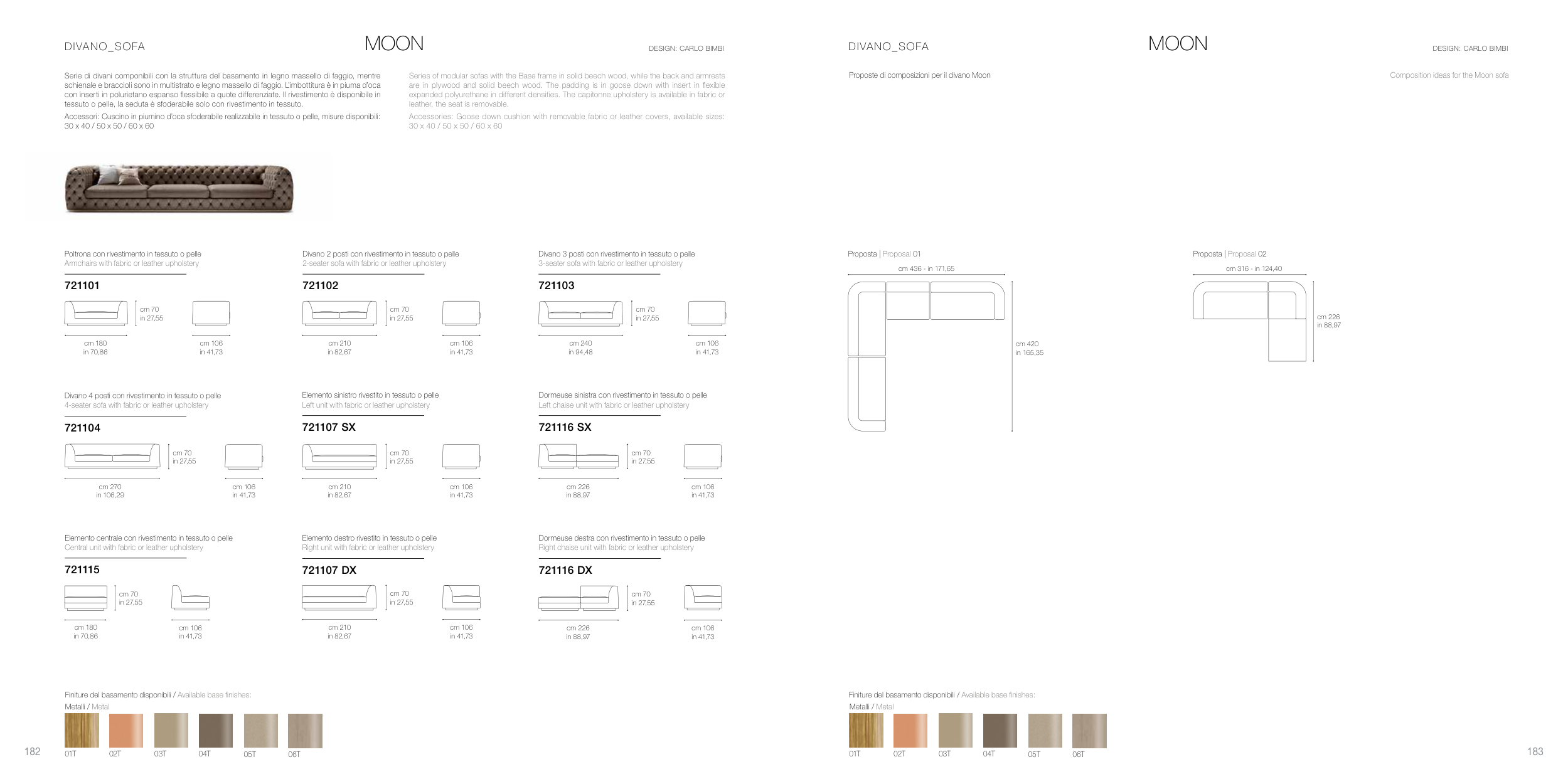 Finiture del basamento disponibili / Available base finishes: