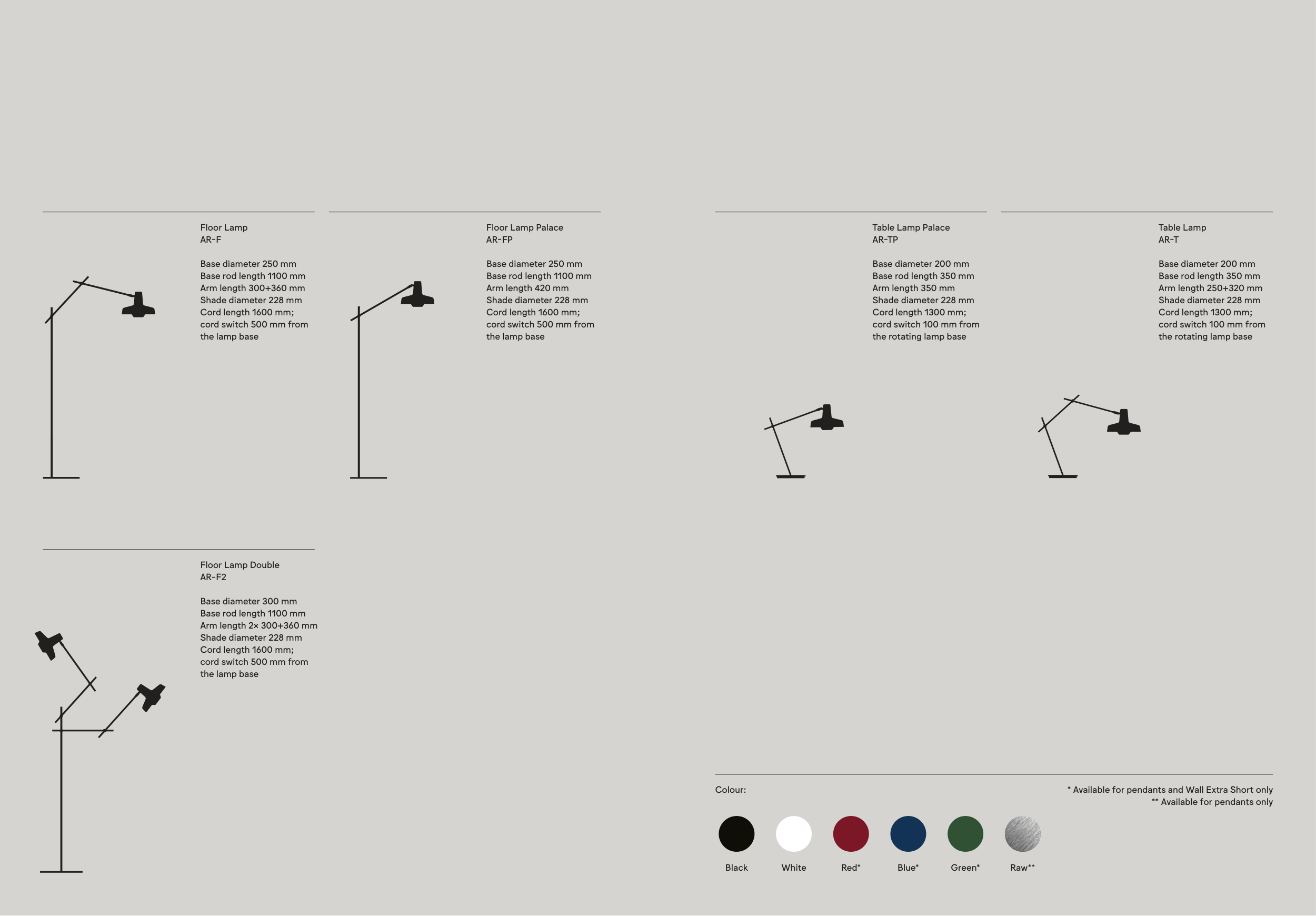 * Available for pendants and Wall Extra Short only