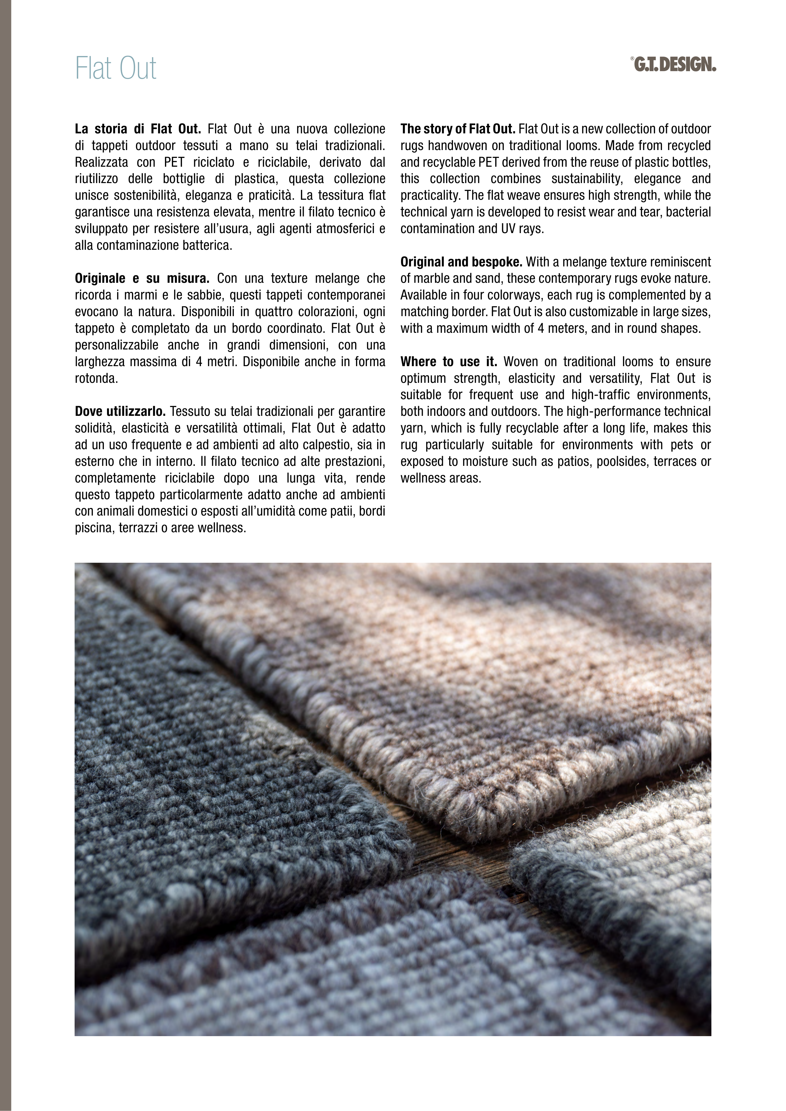 unisce sostenibilità, eleganza e praticità. La tessitura flat