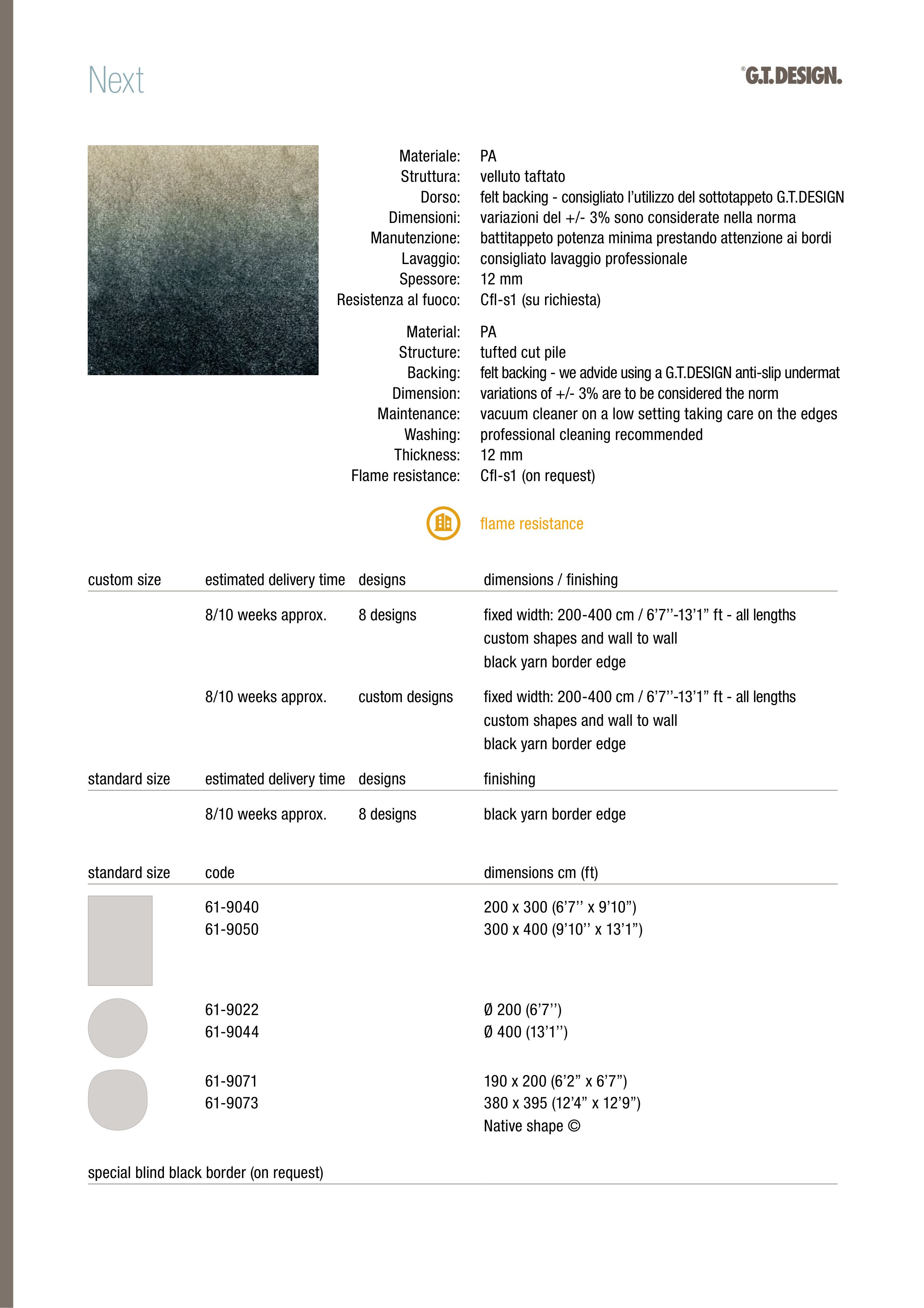 felt backing - consigliato l’utilizzo del sottotappeto G.T.DESIGN