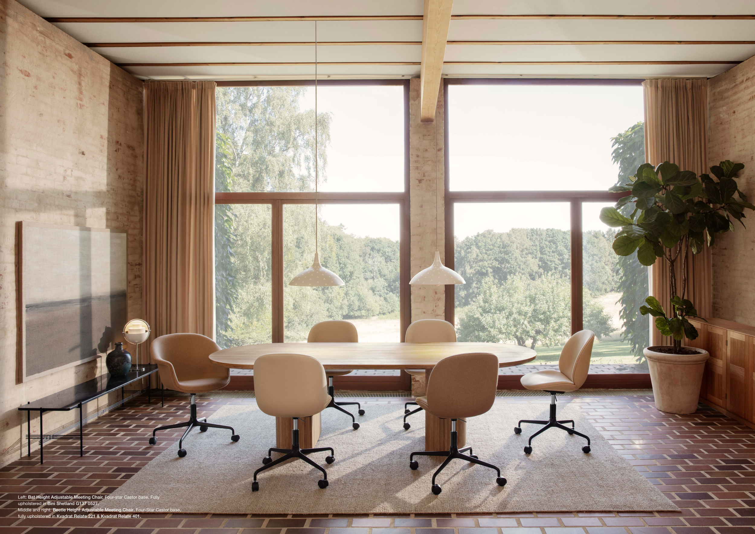 Middle and right: Beetle Height Adjustable Meeting Chair, Four-Star Castor base,