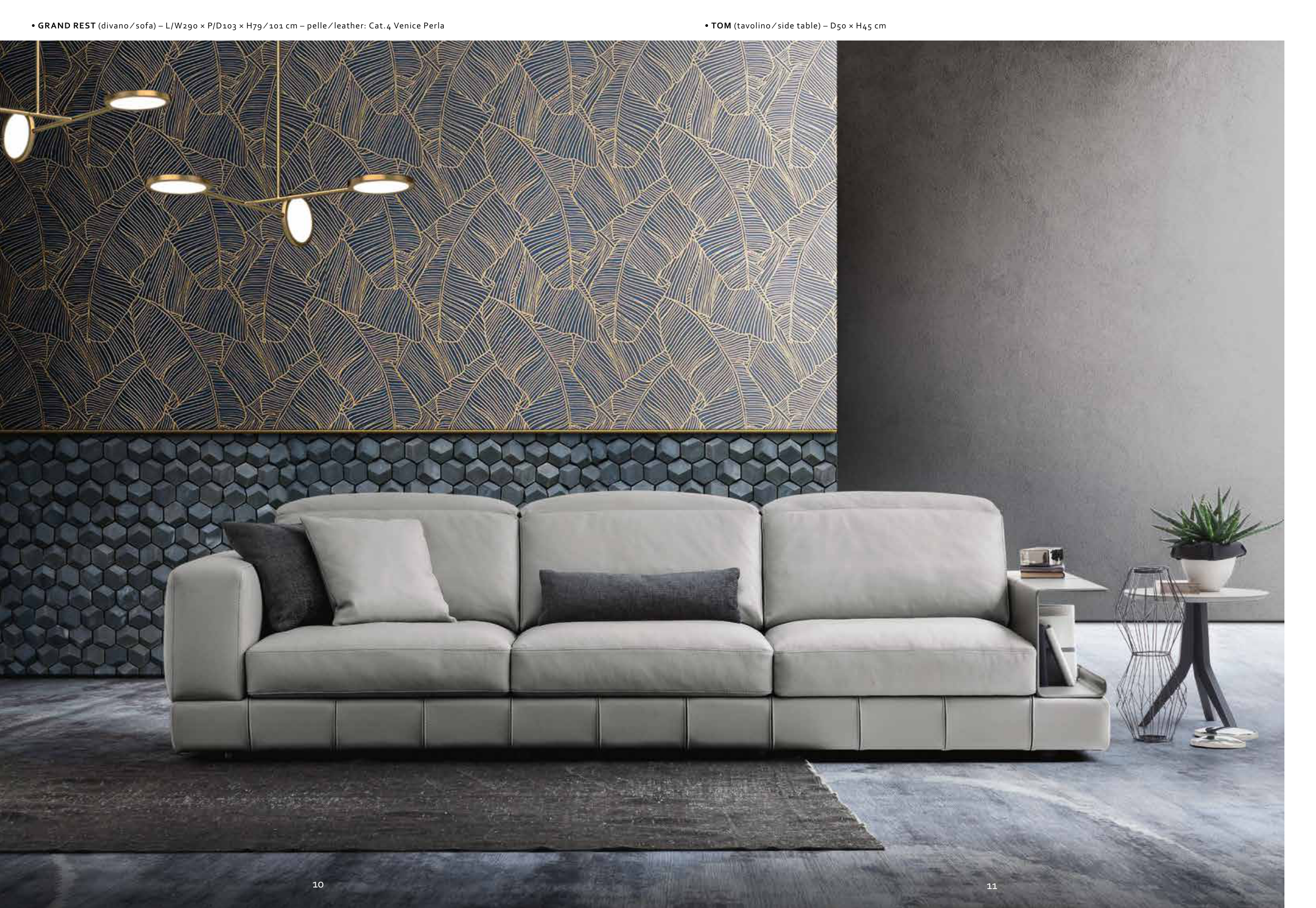• GRAND REST (divano ∕ sofa) – L/W290 × P/D103 × H79 ∕ 101 cm – pelle ∕ leather: Cat.4 Venice Perla
