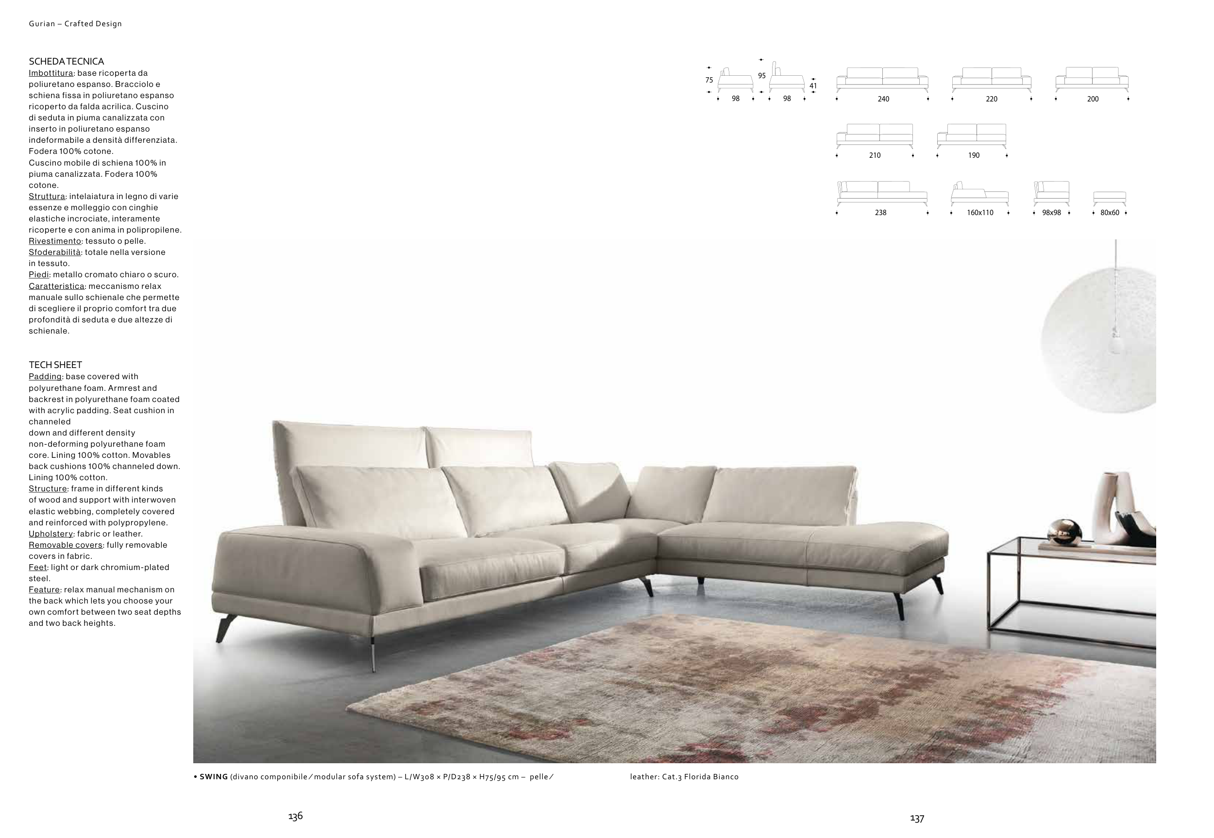 • SWING (divano componibile ∕ modular sofa system) – L/W308 × P/D238 × H75/95 cm – pelle ∕ leather: Cat.3 Florida Bianco