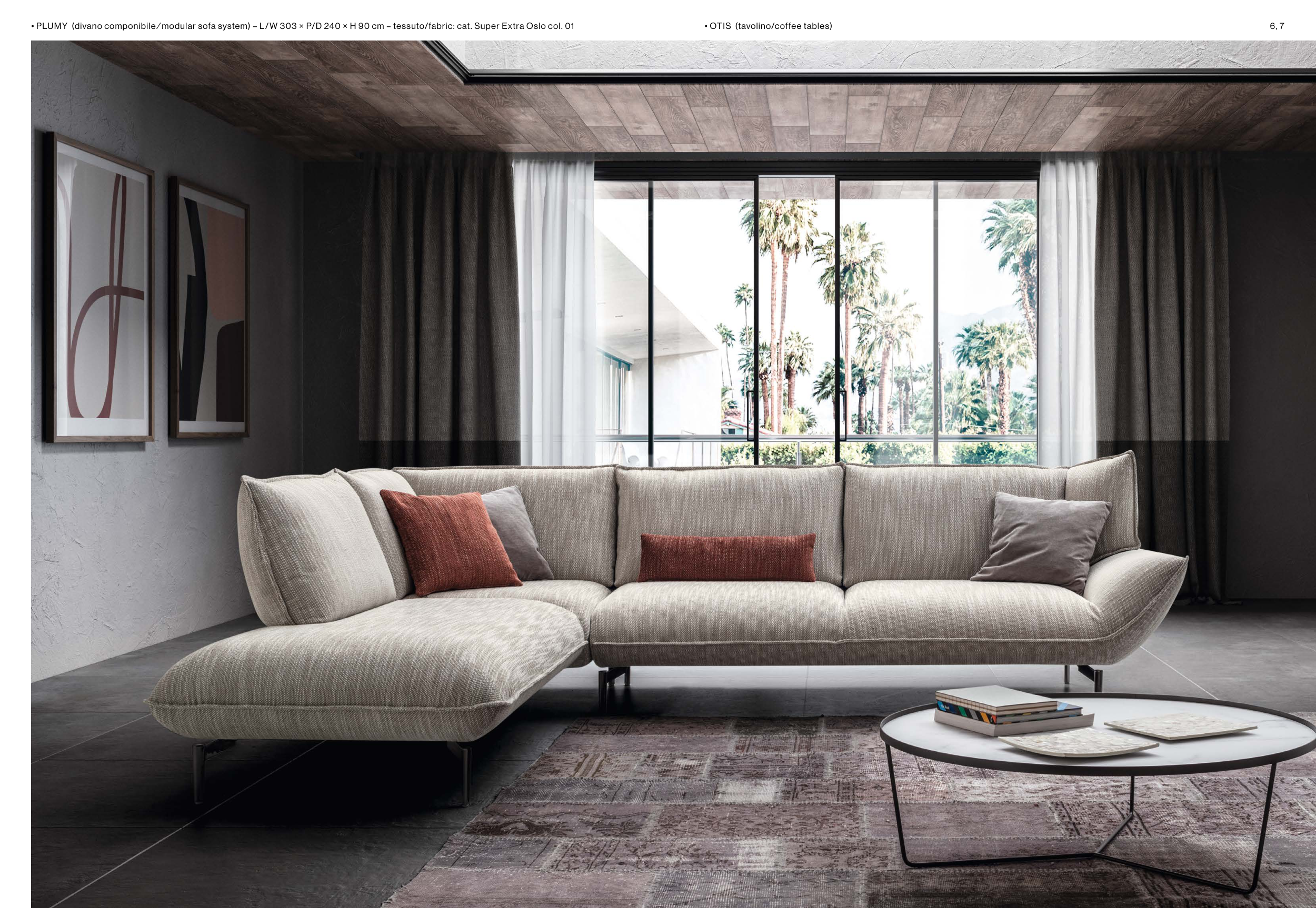 • PLUMY (divano componibile ∕ modular sofa system) – L/W 303 × P/D 240 × H 90 cm – tessuto/fabric: cat. Super Extra Oslo col. 01