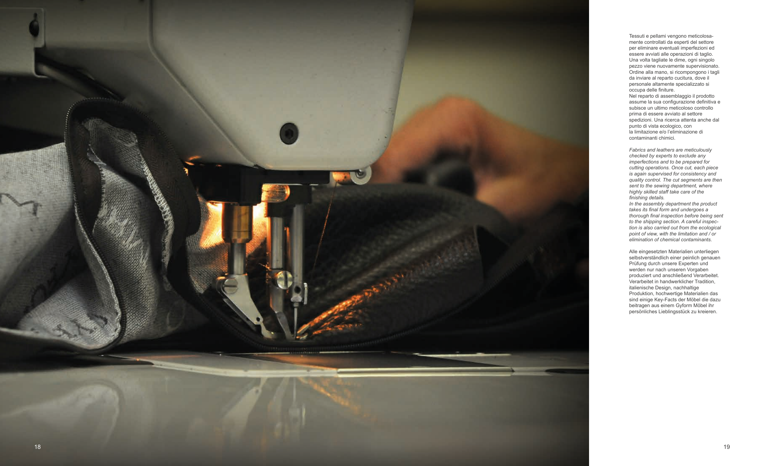 Tessuti e pellami vengono meticolosa-