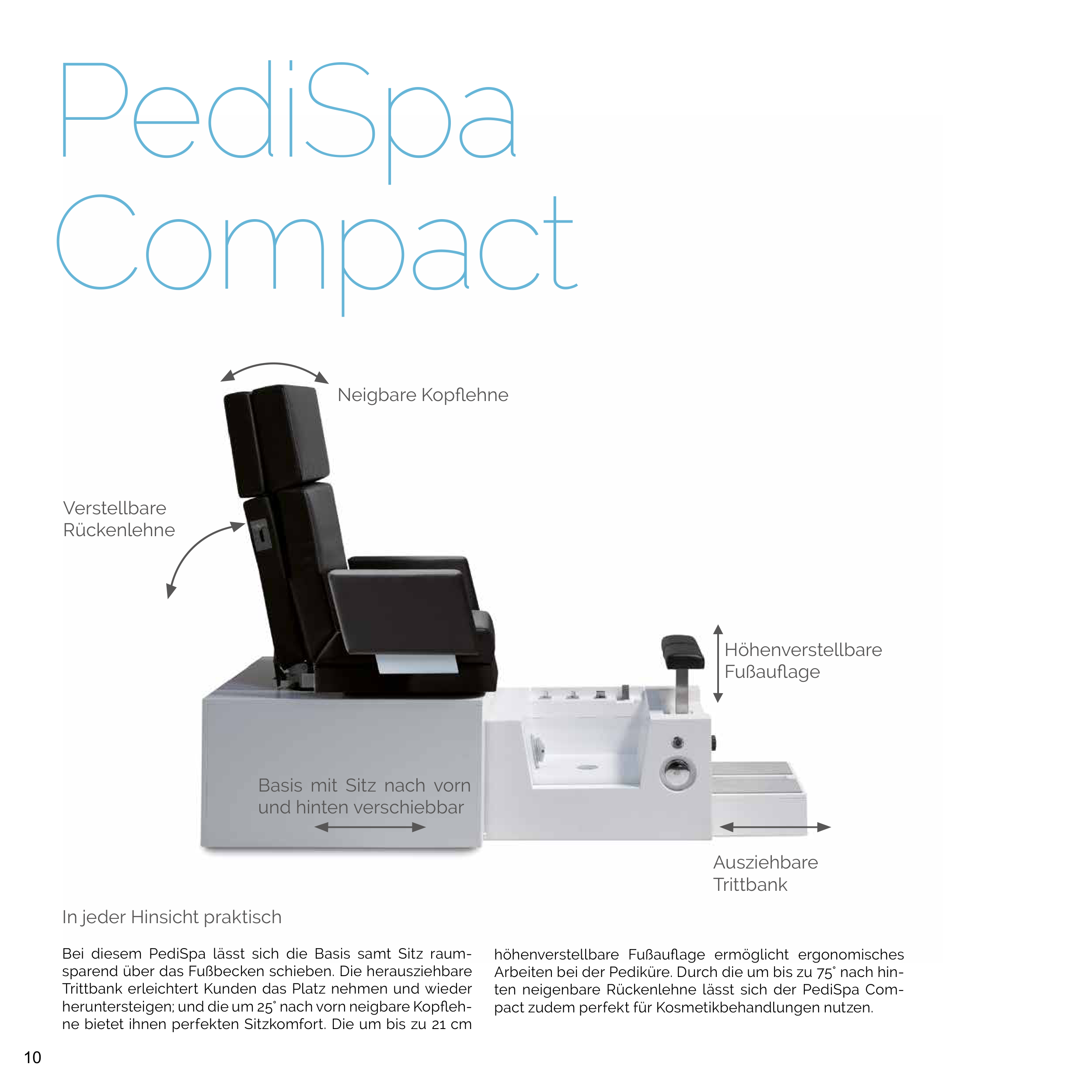 ten neigenbare Rückenlehne lässt sich der PediSpa Com-