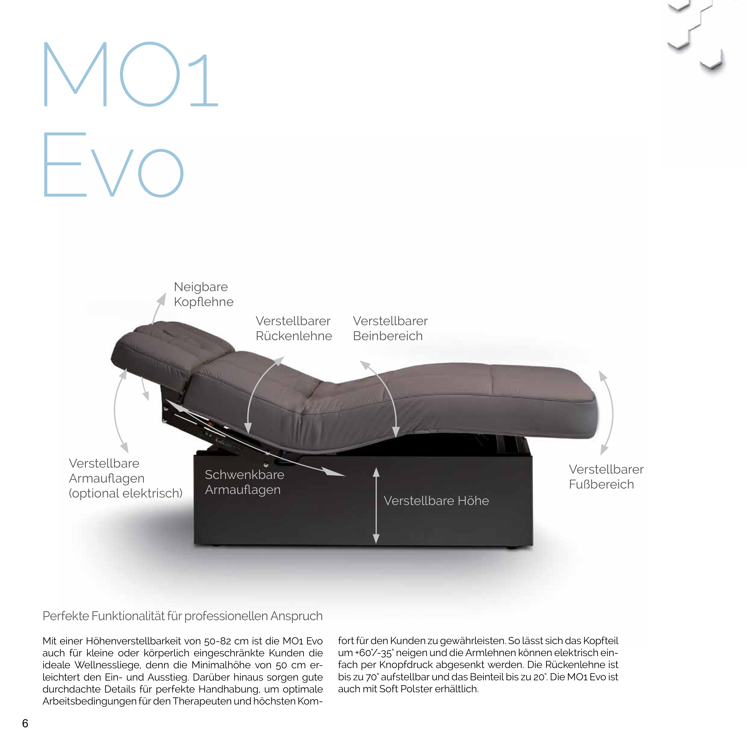 bis zu 70° aufstellbar und das Beinteil bis zu 20°. Die MO1 Evo ist