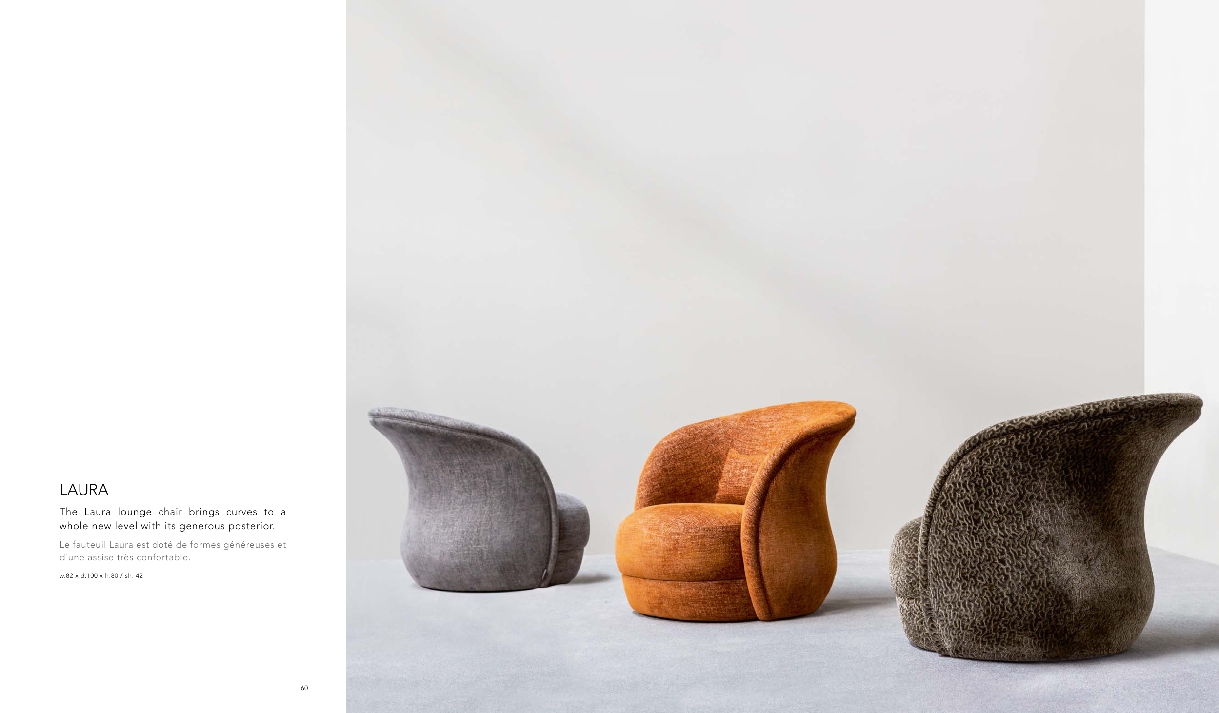 Le fauteuil Laura est doté de formes généreuses et