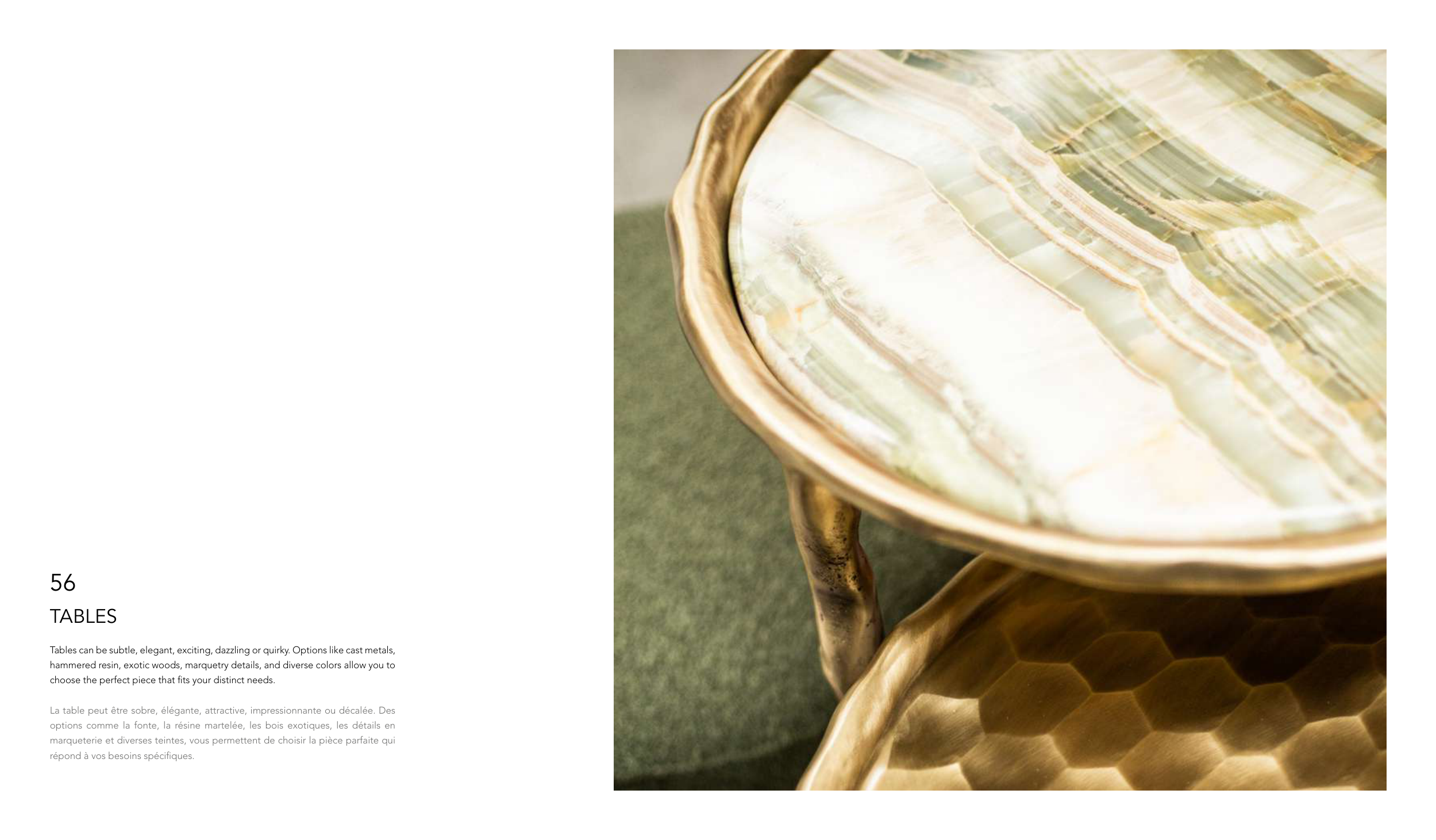 hammered resin, exotic woods, marquetry details, and diverse colors allow you to