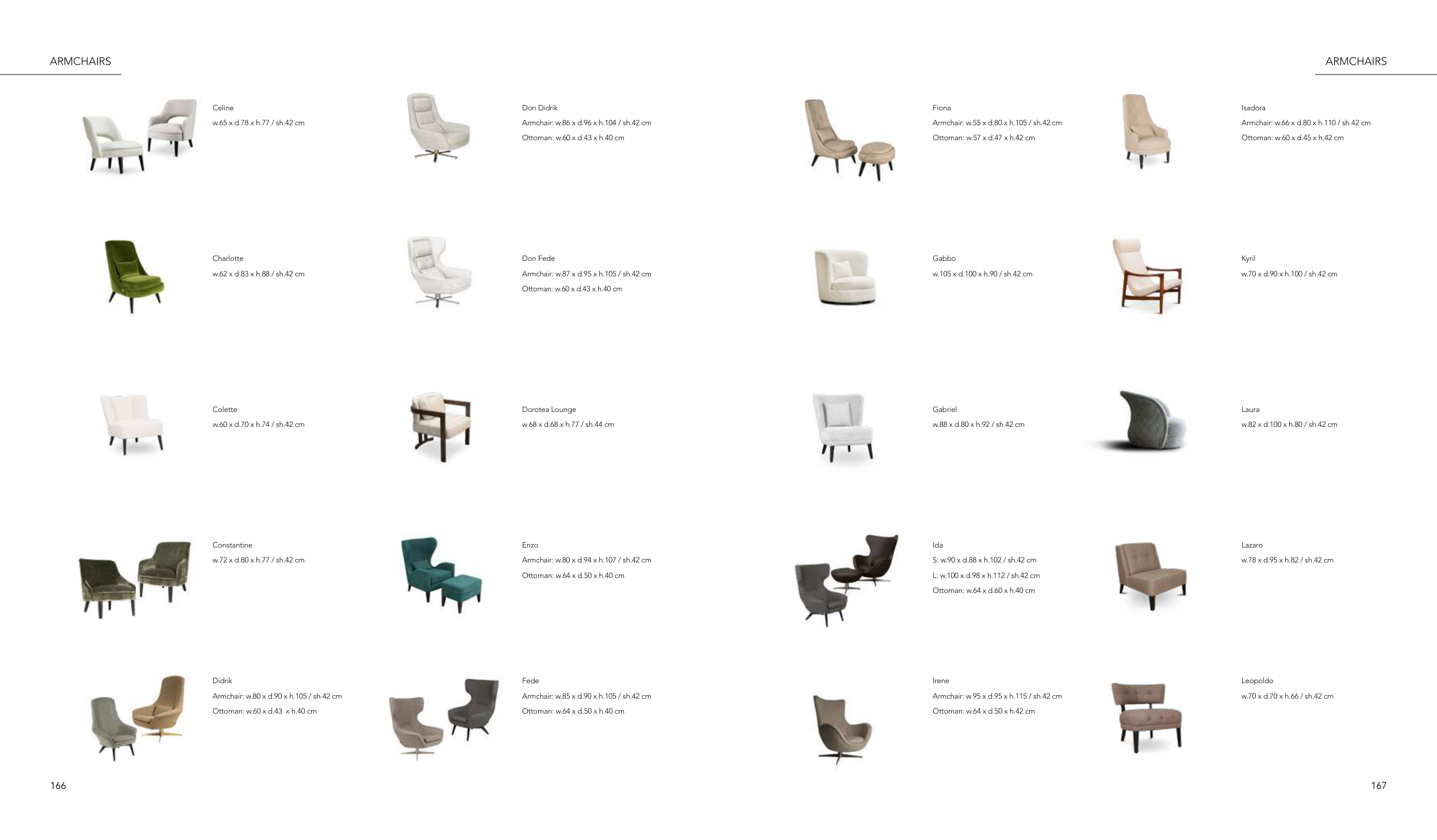 Armchair: w.80 x d.94 x h.107 / sh.42 cm