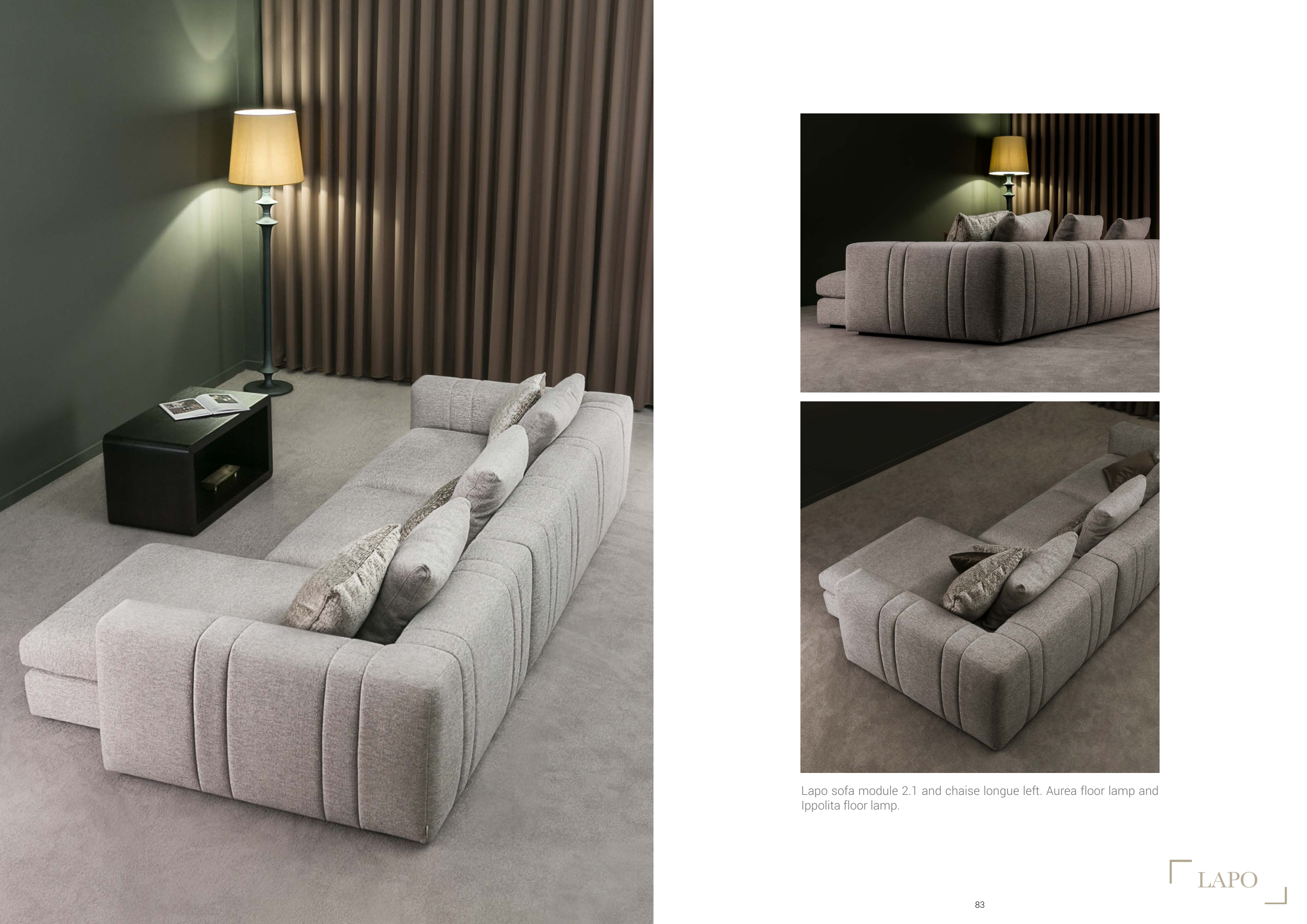 Lapo sofa module 2.1 and chaise longue left. Aurea floor lamp and