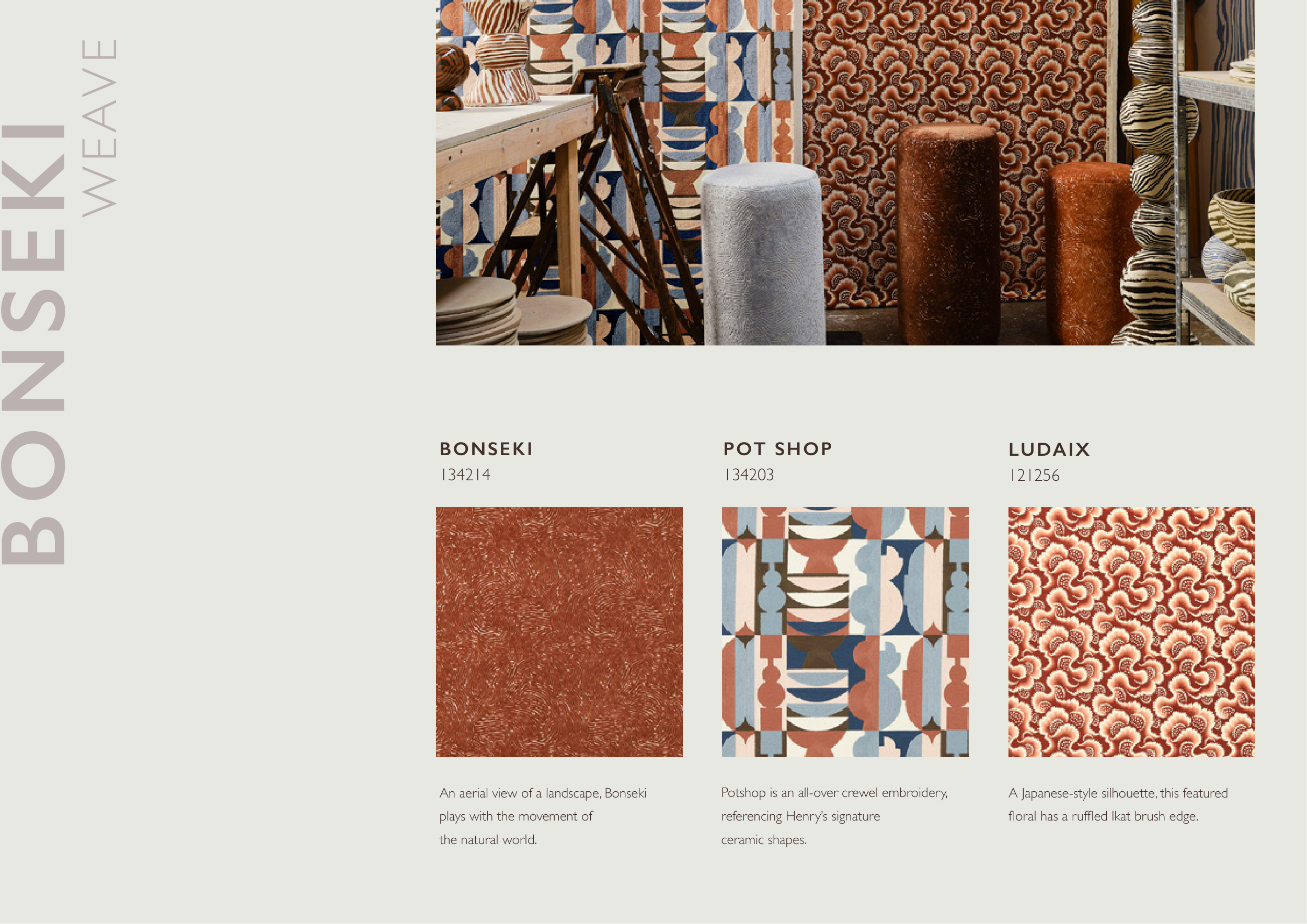 Potshop is an all-over crewel embroidery,