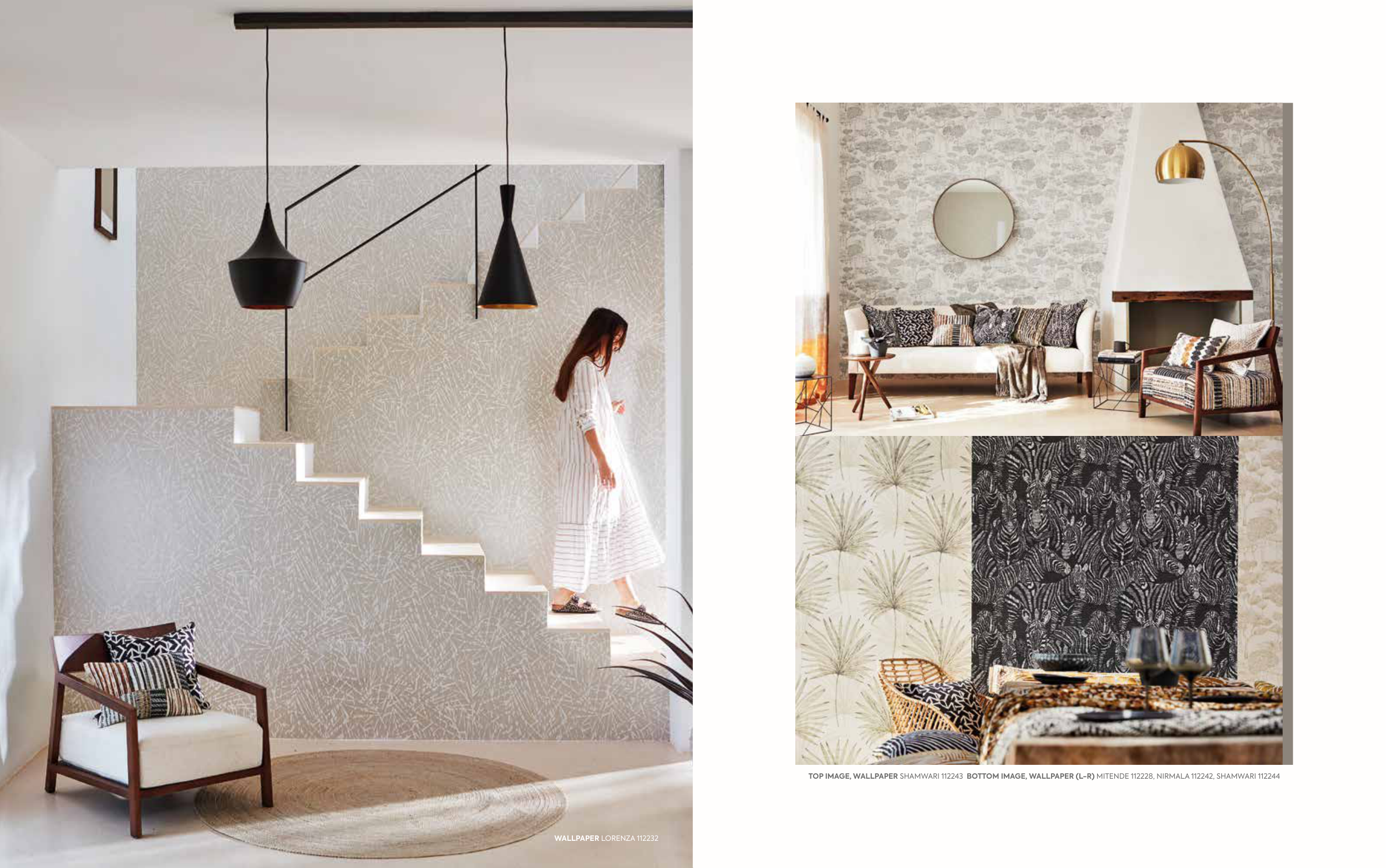 TOP IMAGE, WALLPAPER SHAMWARI 112243 BOTTOM IMAGE, WALLPAPER (L-R) MITENDE 112228, NIRMALA 112242, SHAMWARI 112244