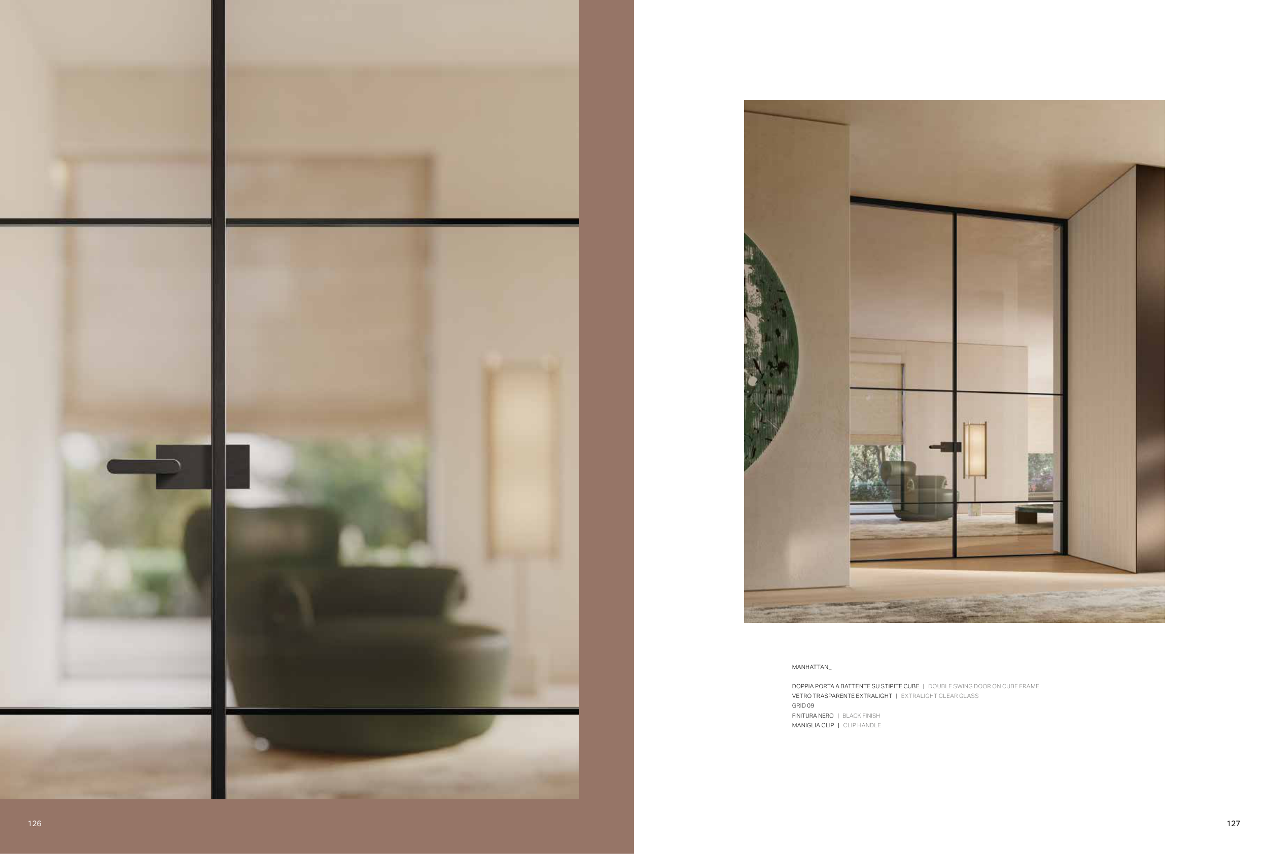 DOPPIA PORTA A BATTENTE SU STIPITE CUBE | DOUBLE SWING DOOR ON CUBE FRAME